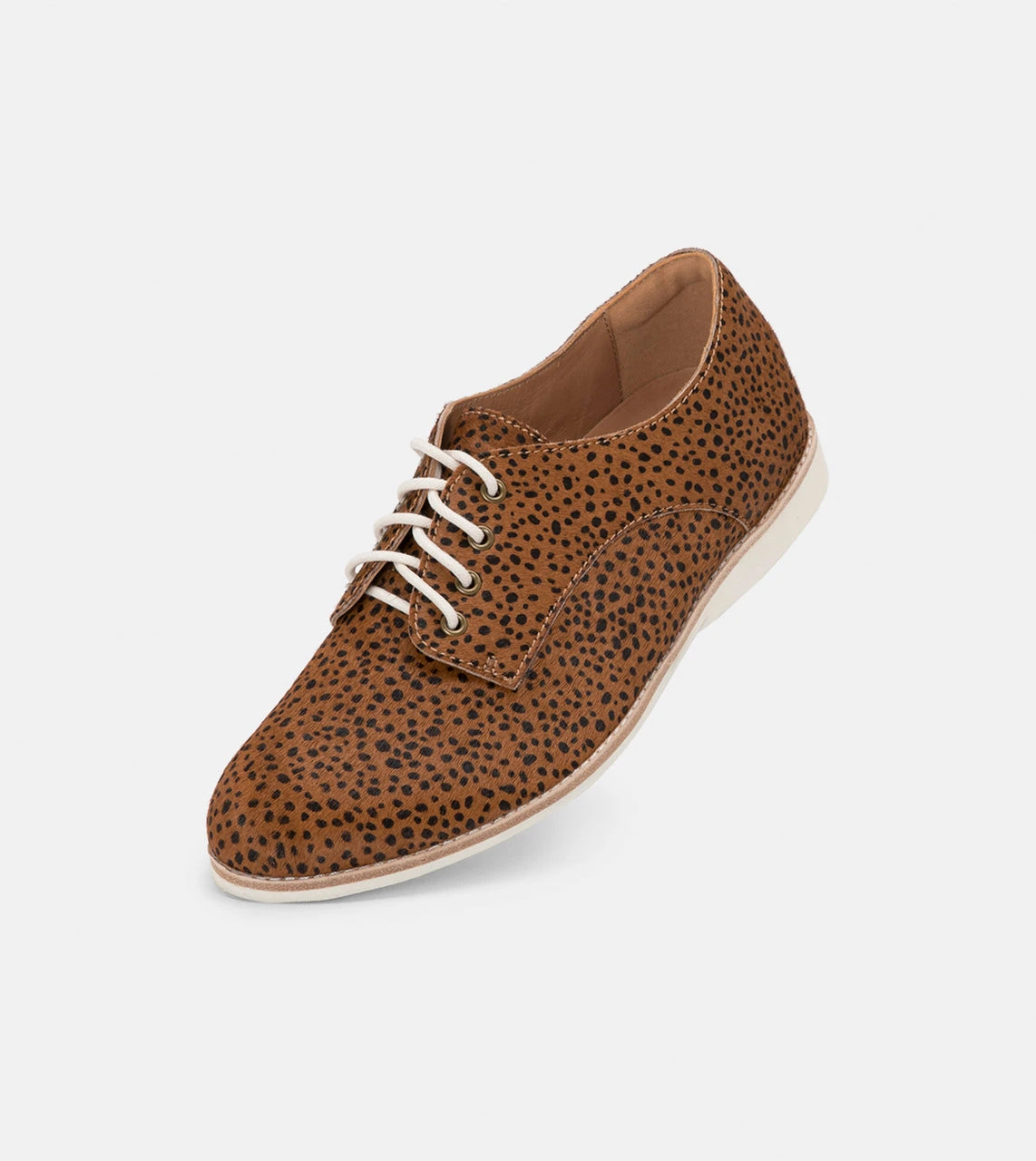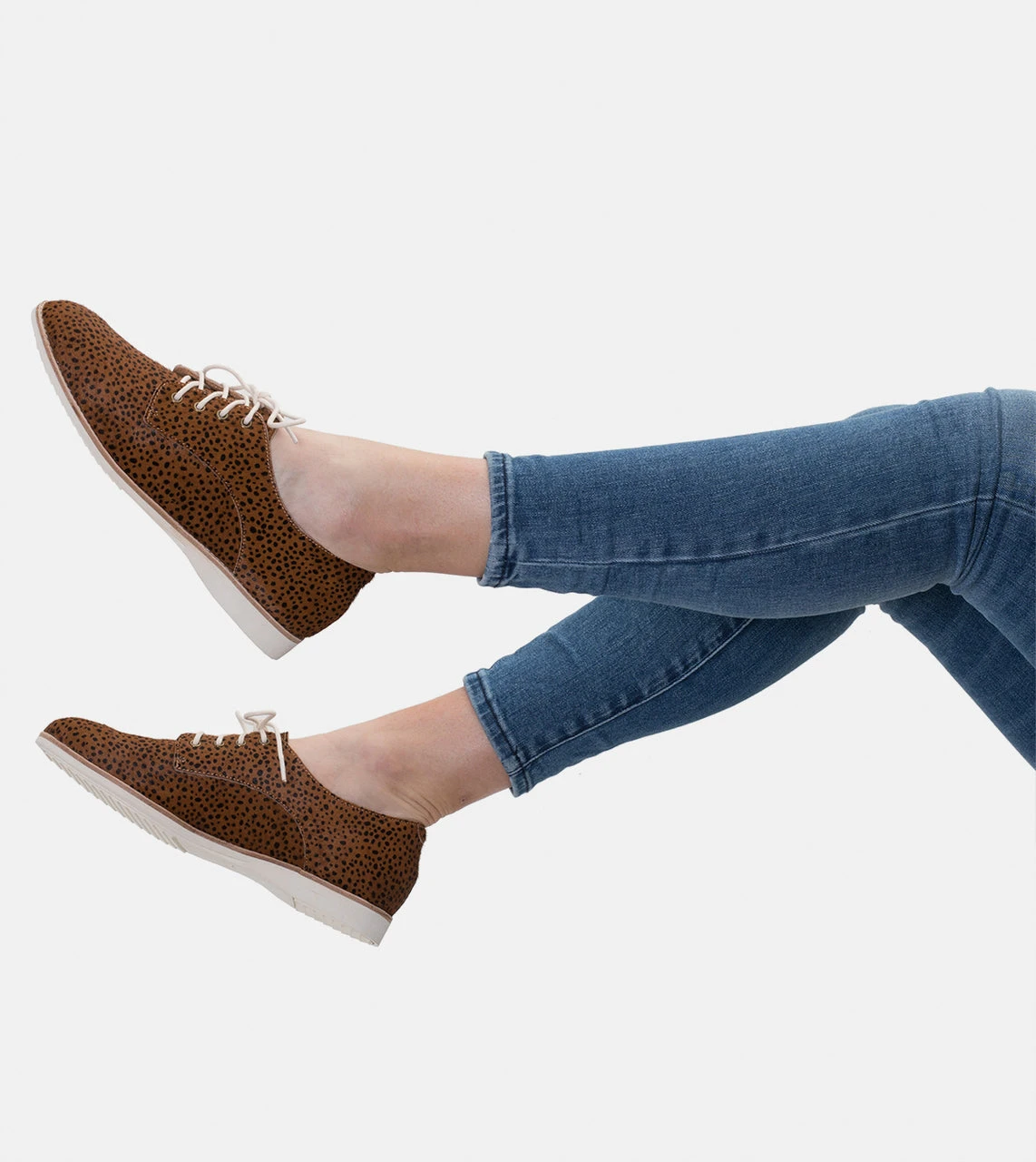 Walk on the wild side this winter in the stylish Derby Brown Snow Leopard shoe. This calf hair shoe not only adds a bit of fun to your style, but will also keep you light on your feet as they weigh less than a pair of flip flops! Take them to work, take them out on the town or take them abroad, they’re perfect for all travel near and far!