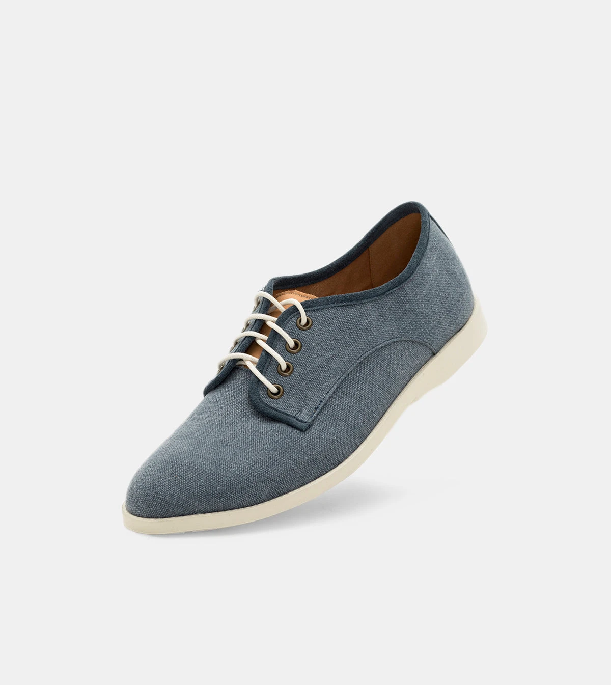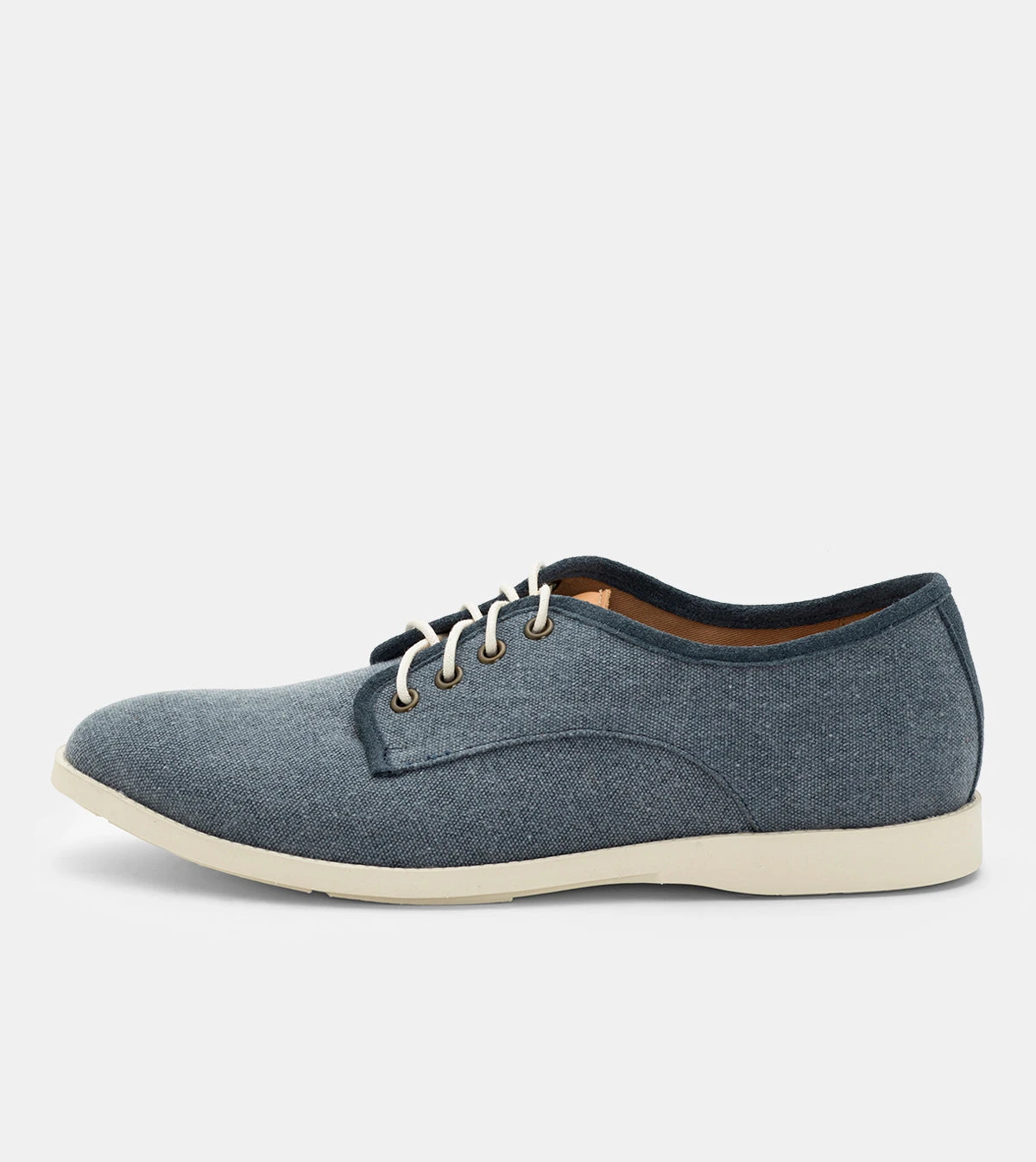- Blue canvas upper in a washed denim finish.