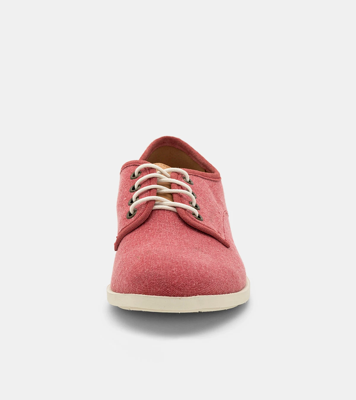 - Red canvas upper in a washed finish.