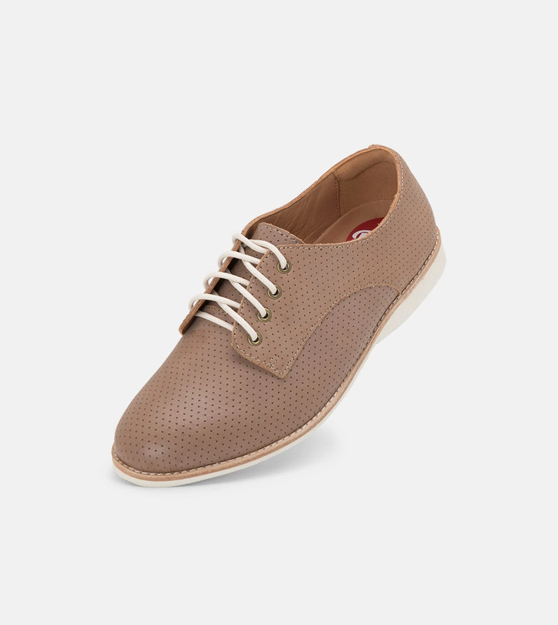 Add some flair and detail with the stylish Derby Pin Punch Antique Latte shoe. A burnished antique latte leather upper with pin punch hole detailing to make it all that little bit more fancy. Wear these super lightweight shoes for work or play and travel light!