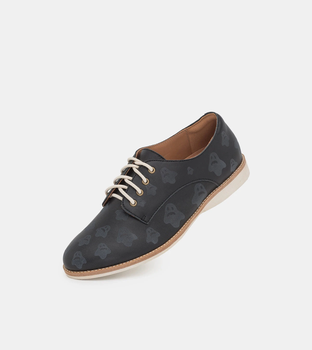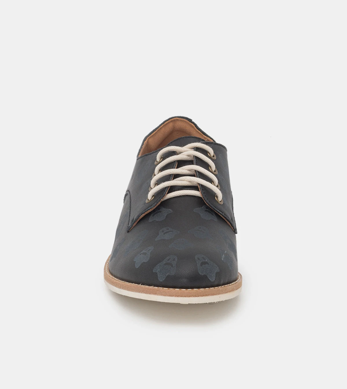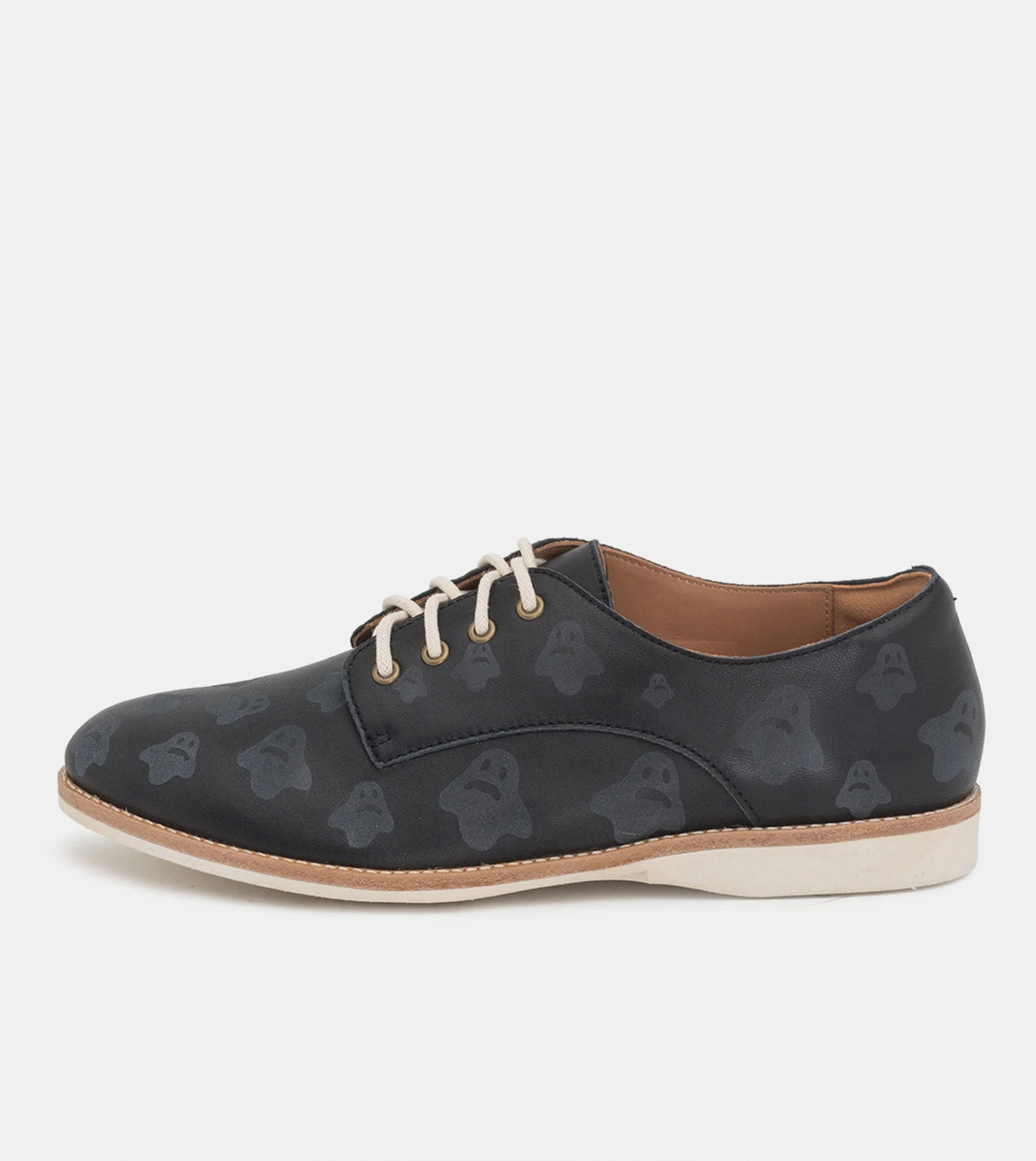 Here’s a little treat for your feet for Halloween! Introducing the Derby Boo! featuring little ghost illustrations that blend in with the smooth black leather upper during the day. Once they’ve sucked in all the sunlight by day, at night they’ll come alive and glow-in-the-dark! They’ll be as light as a ghost whilst you float around trick or treating and after the spooky holiday, they’ll easily transition into an everyday shoe!