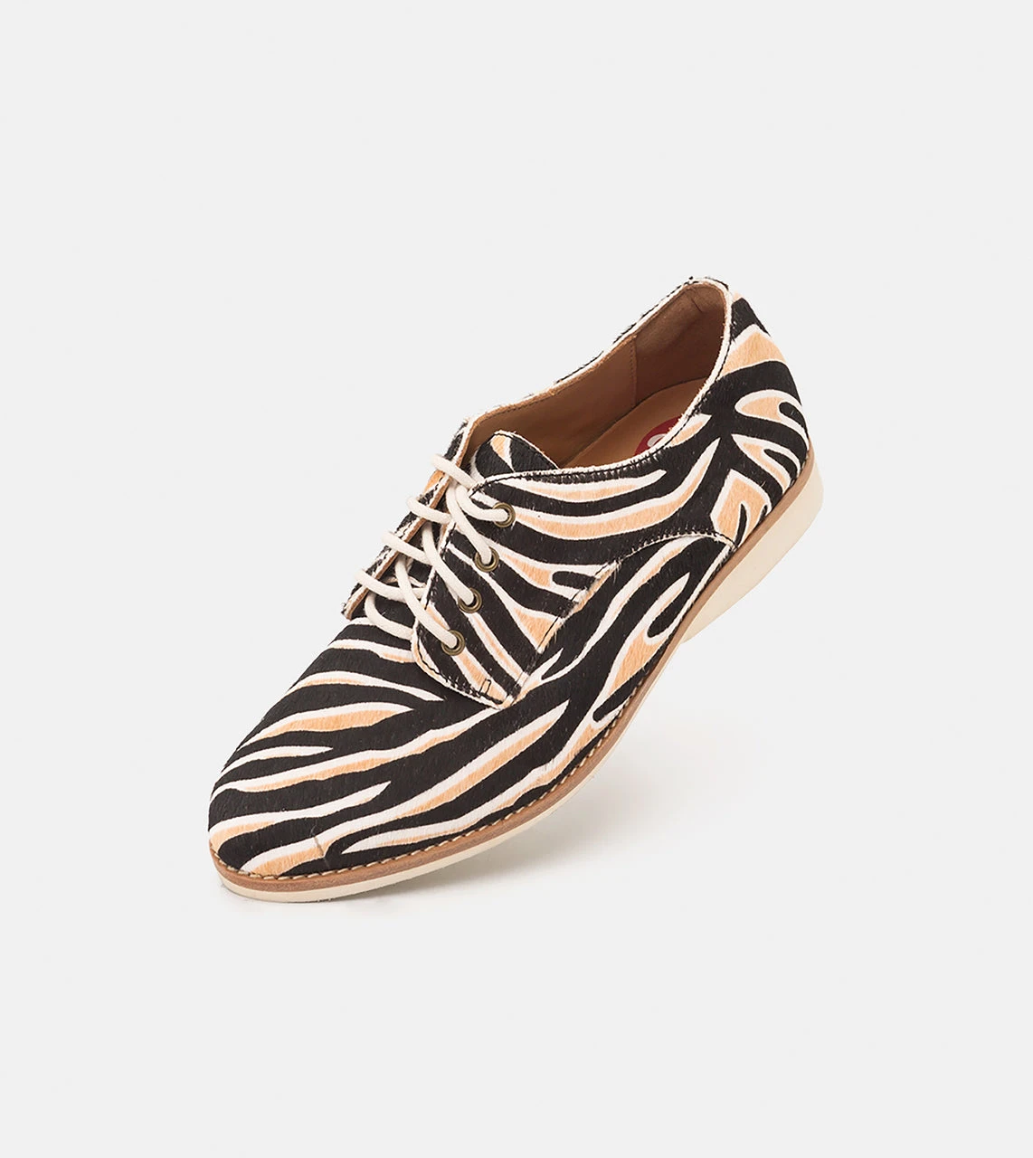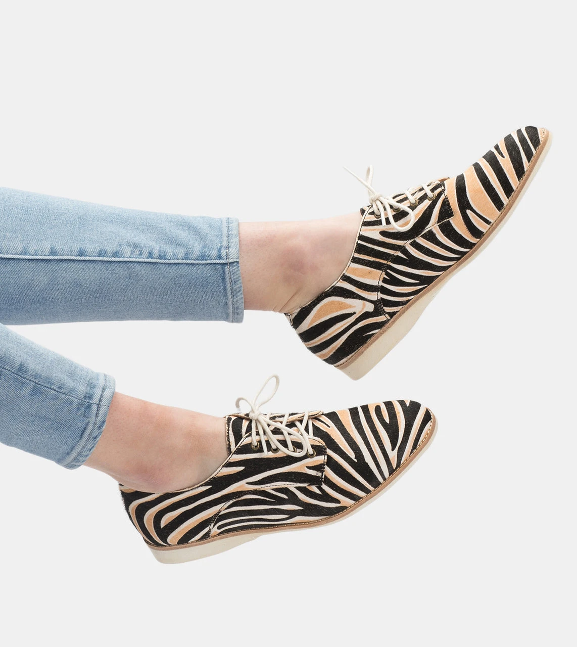Stand out in the Derby Camel Zebra shoes! With ultra soft printed calf hair uppers, memory foam insoles and a ballerina instep elastic to hug your feet all day long. Weighing less than a pair of bananas makes them the ultimate travel companion for your next adventure! Travel light with Rollie shoes.