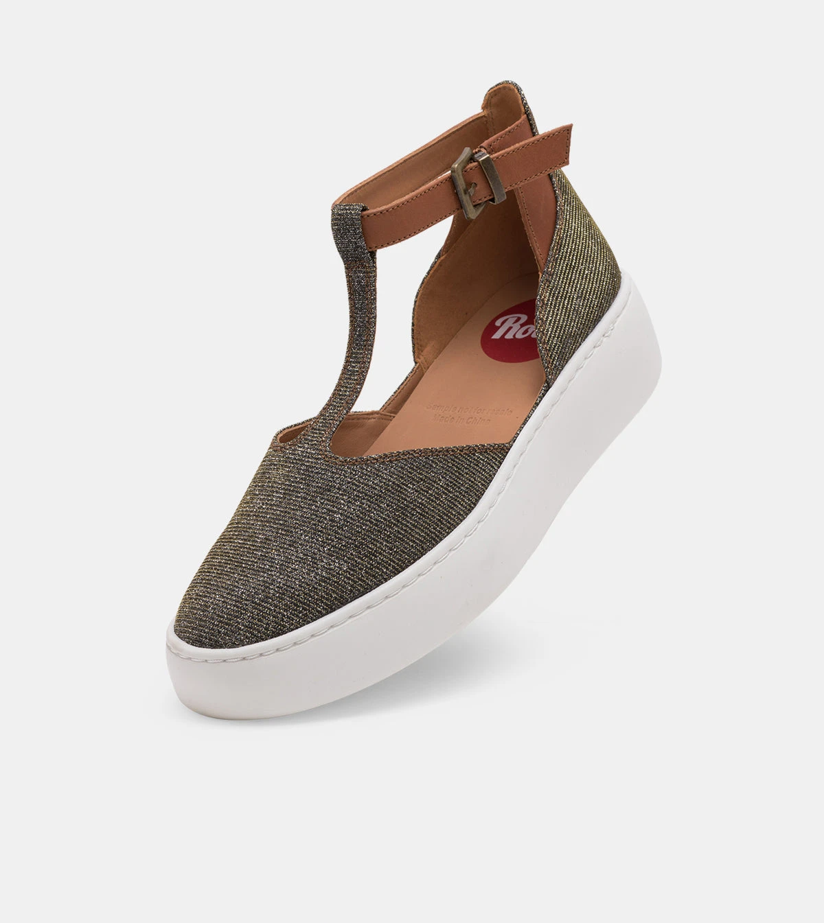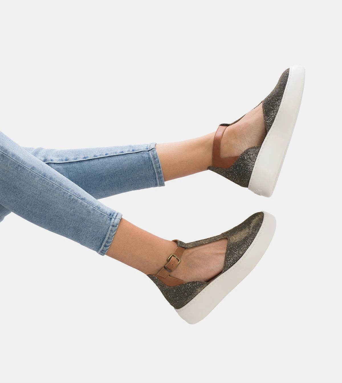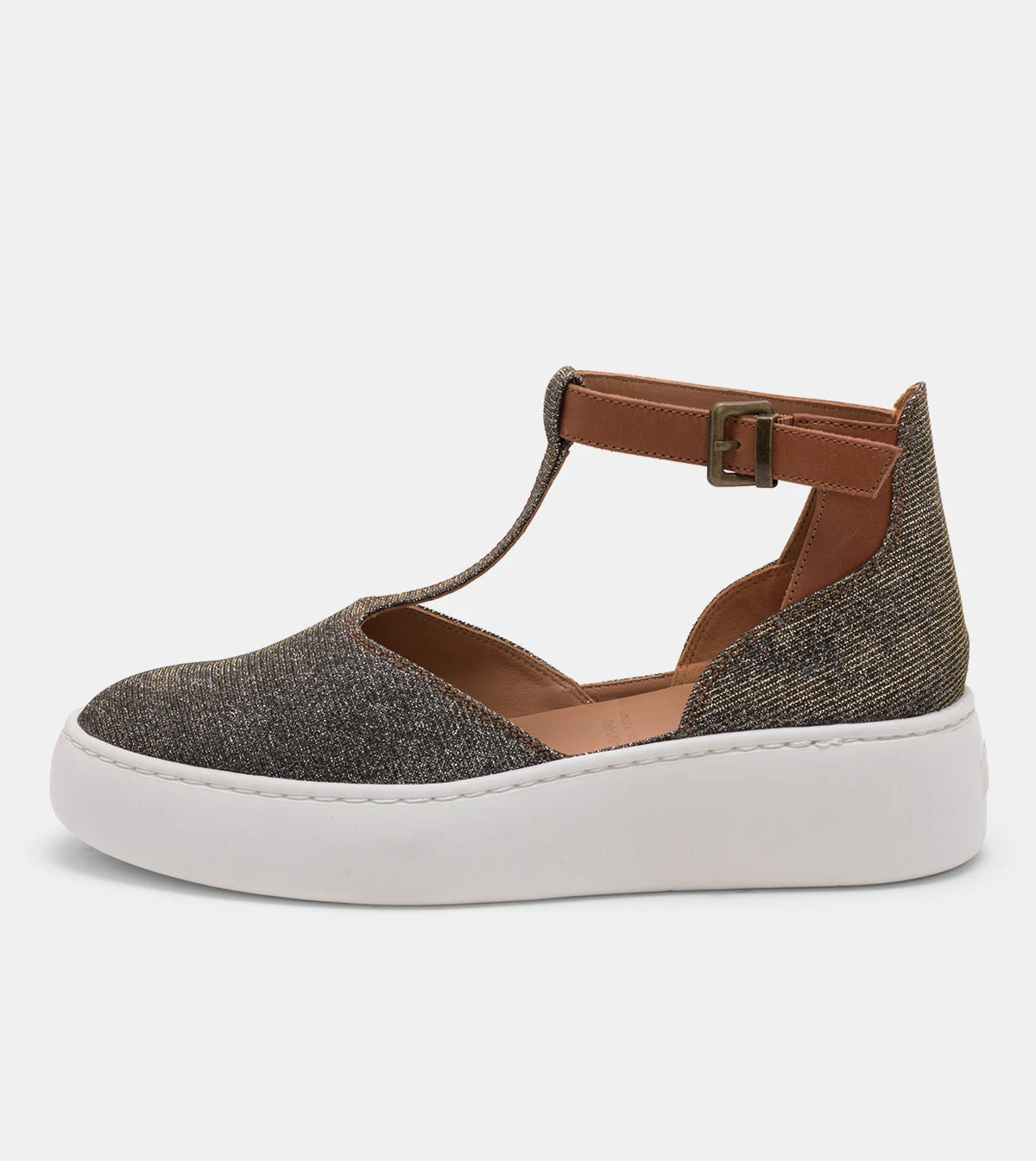 Chic and loaded with charm, the City T-Bar in Twinkle and Tan brings a wink of fun to every step. A re-vamped, elevated classic, these babies takes the old school T-Bar silhouette and pumps it up with a lil’ booster-seat heel to keep you walking tall and light on your feet.