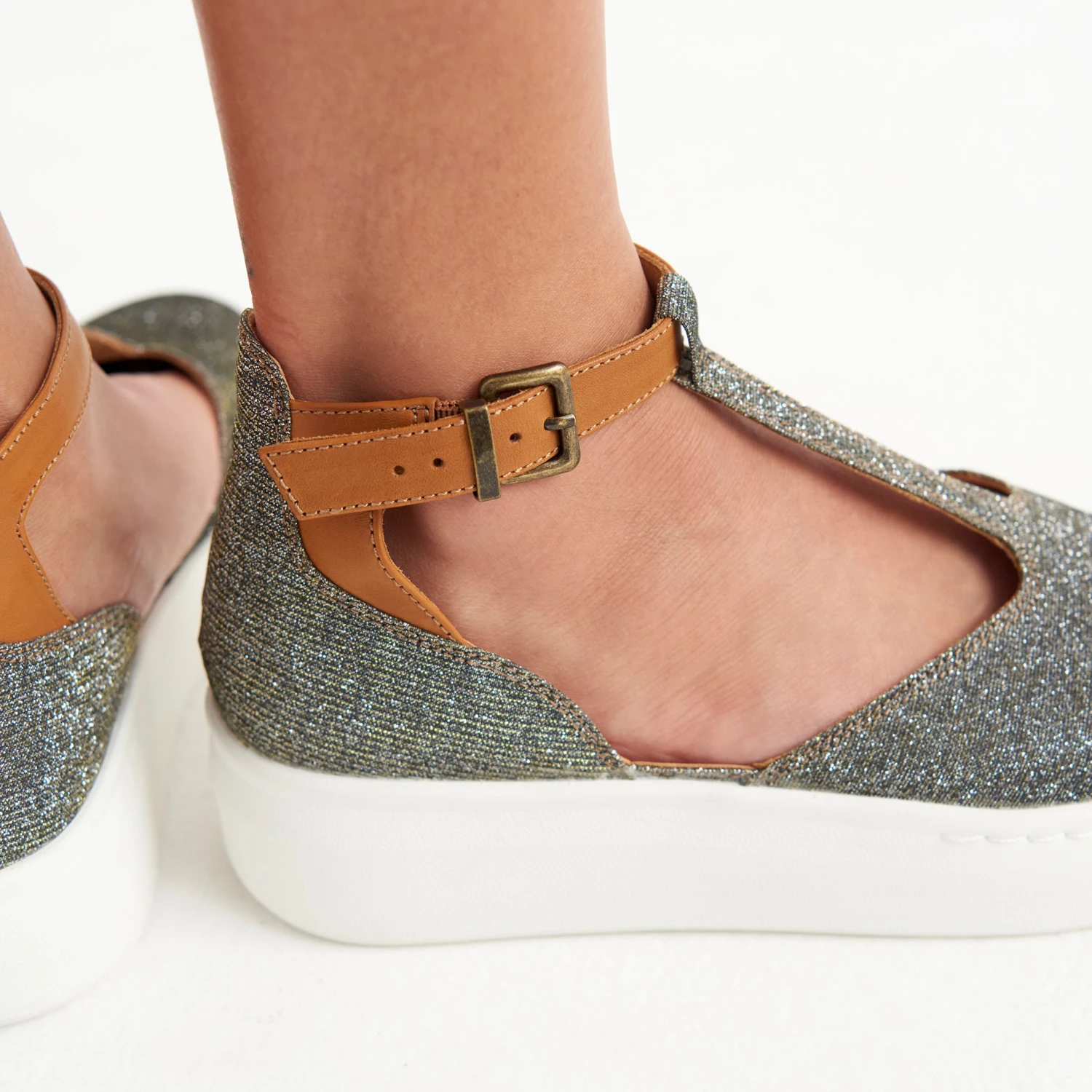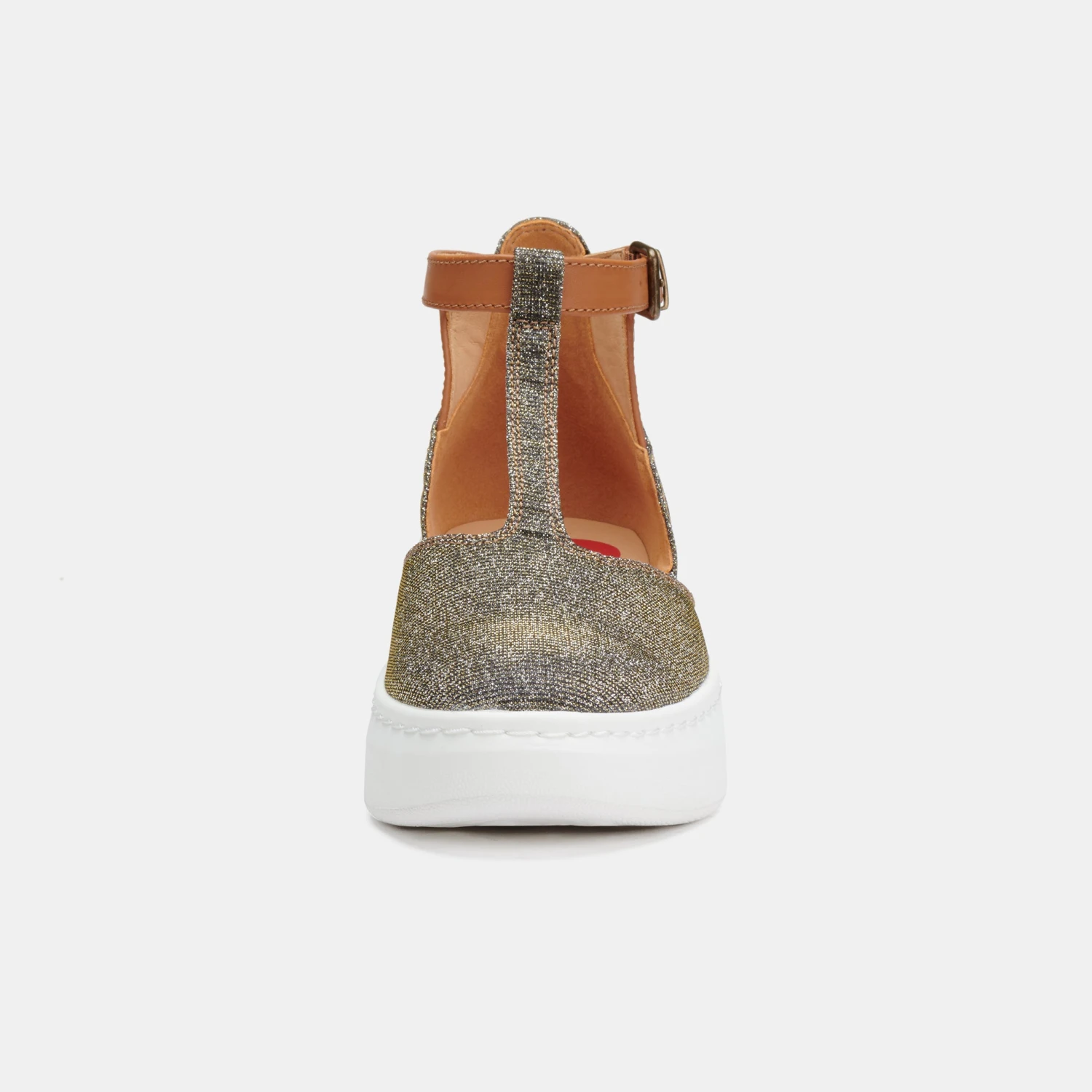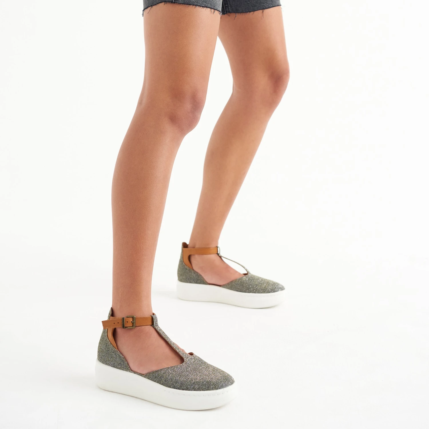 Chic and loaded with charm, the City T-Bar in Twinkle and Tan brings a wink of fun to every step. A re-vamped, elevated classic, these babies takes the old school T-Bar silhouette and pumps it up with a lil’ booster-seat heel to keep you walking tall and light on your feet.