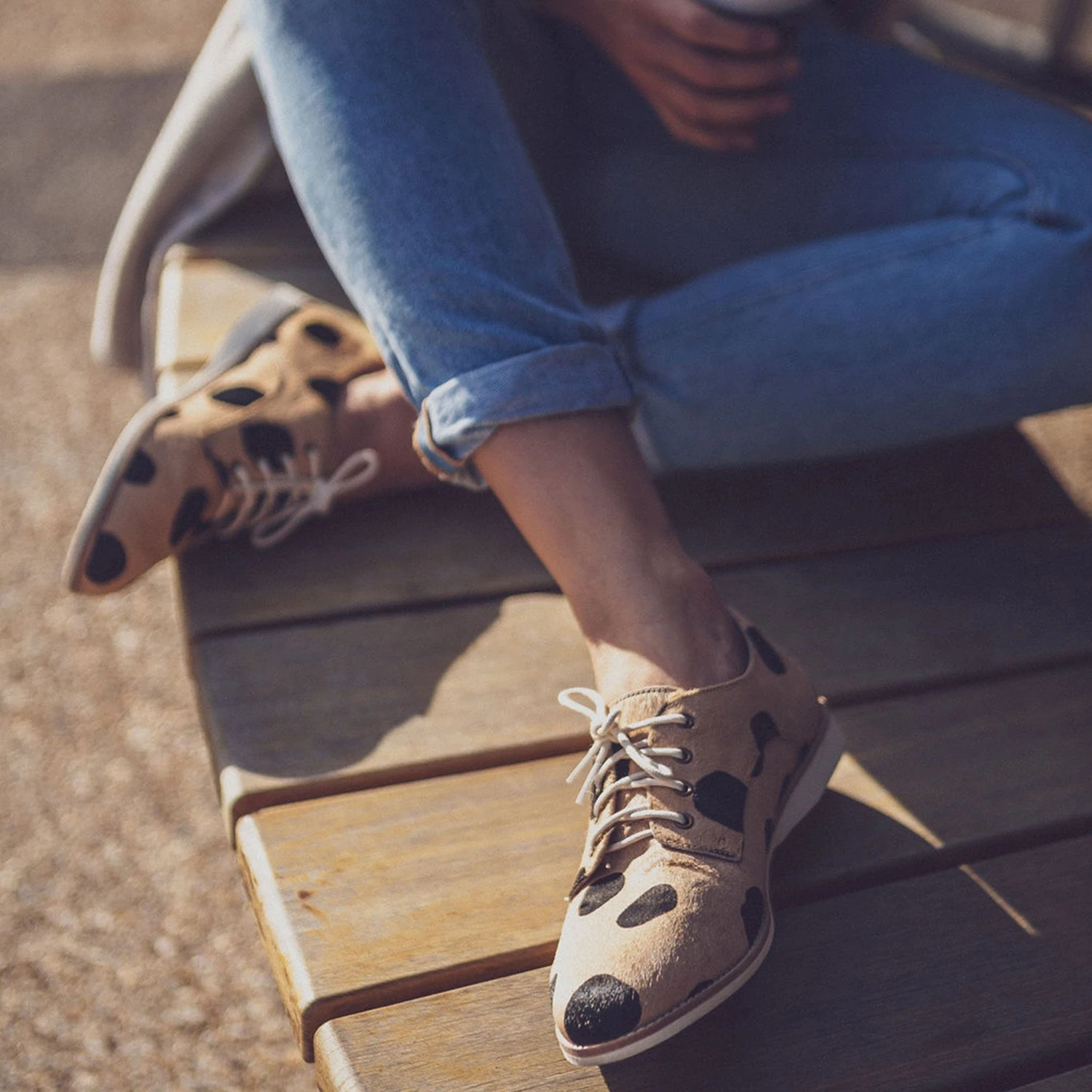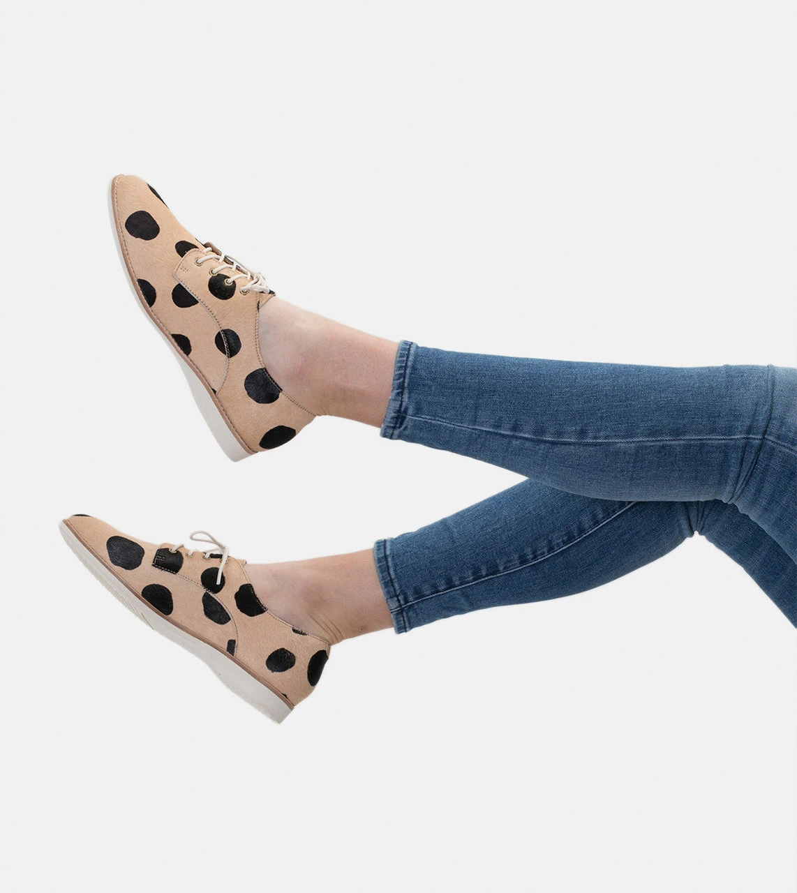Get spotted this season in our Derby Beige/Black Spot shoe. This calf hair number not only looks super cool, but is lightweight making it perfect for travelling. It’s leather and canvas lining makes them breathable all day long and it’s collar padding adds extra comfort for wear! Be sure to spotted and stopped with a compliment on the streets!