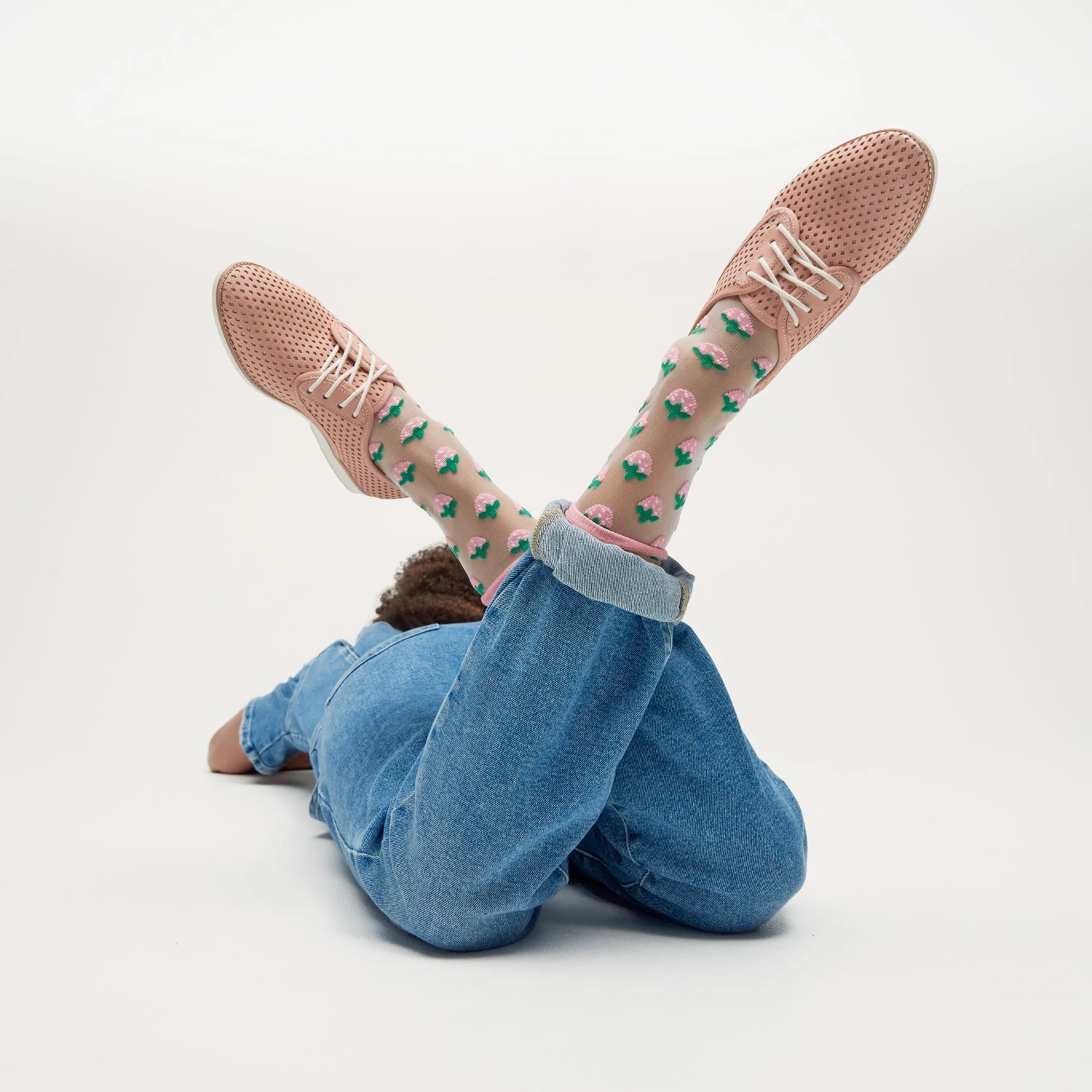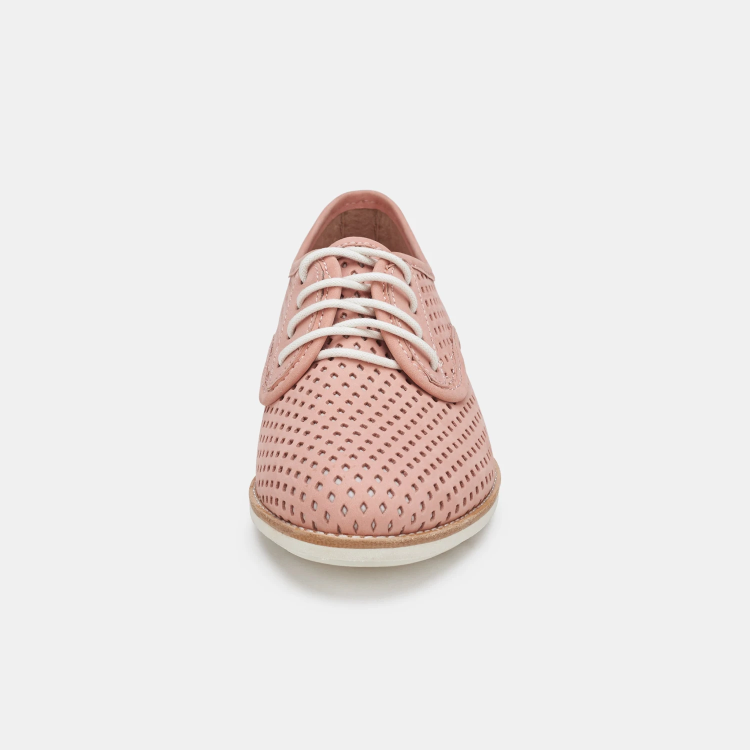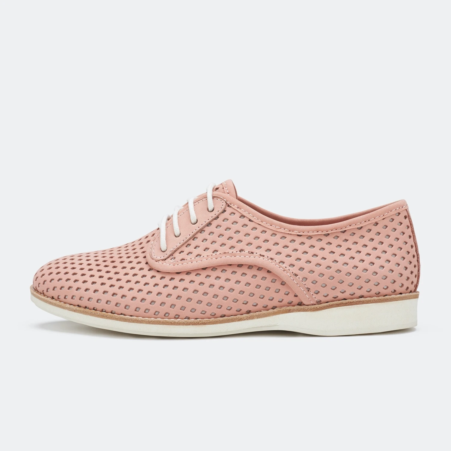 Pink punch leather upper with white lining underneath, like all Rollie shoes, the Derby Punch Overlay Pink is comfy and light.¬â€