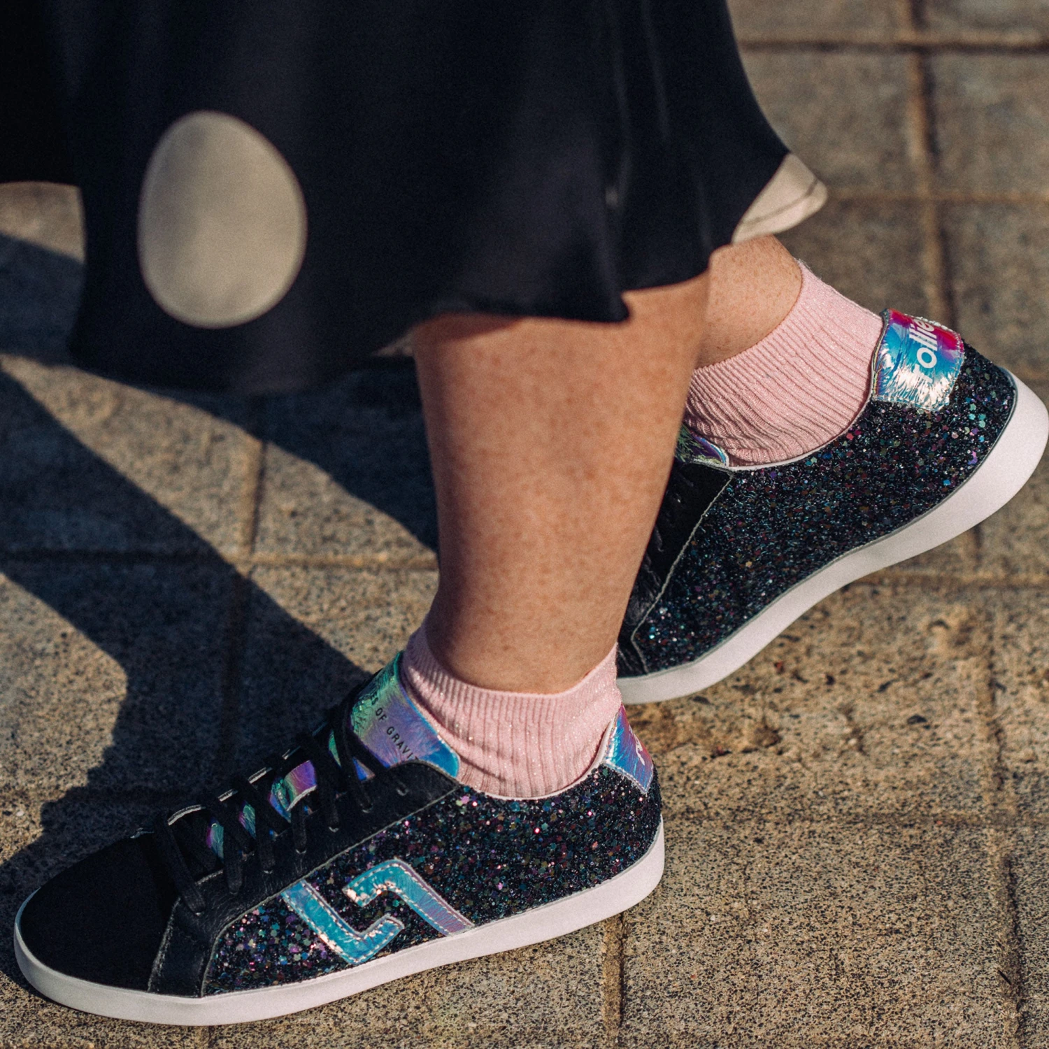 A sparkly take on our newest sneakers! Not one for the wallflowers. Rollie sneakers are made with the latest in technical sneaker design, making them super lightweight and flexible.