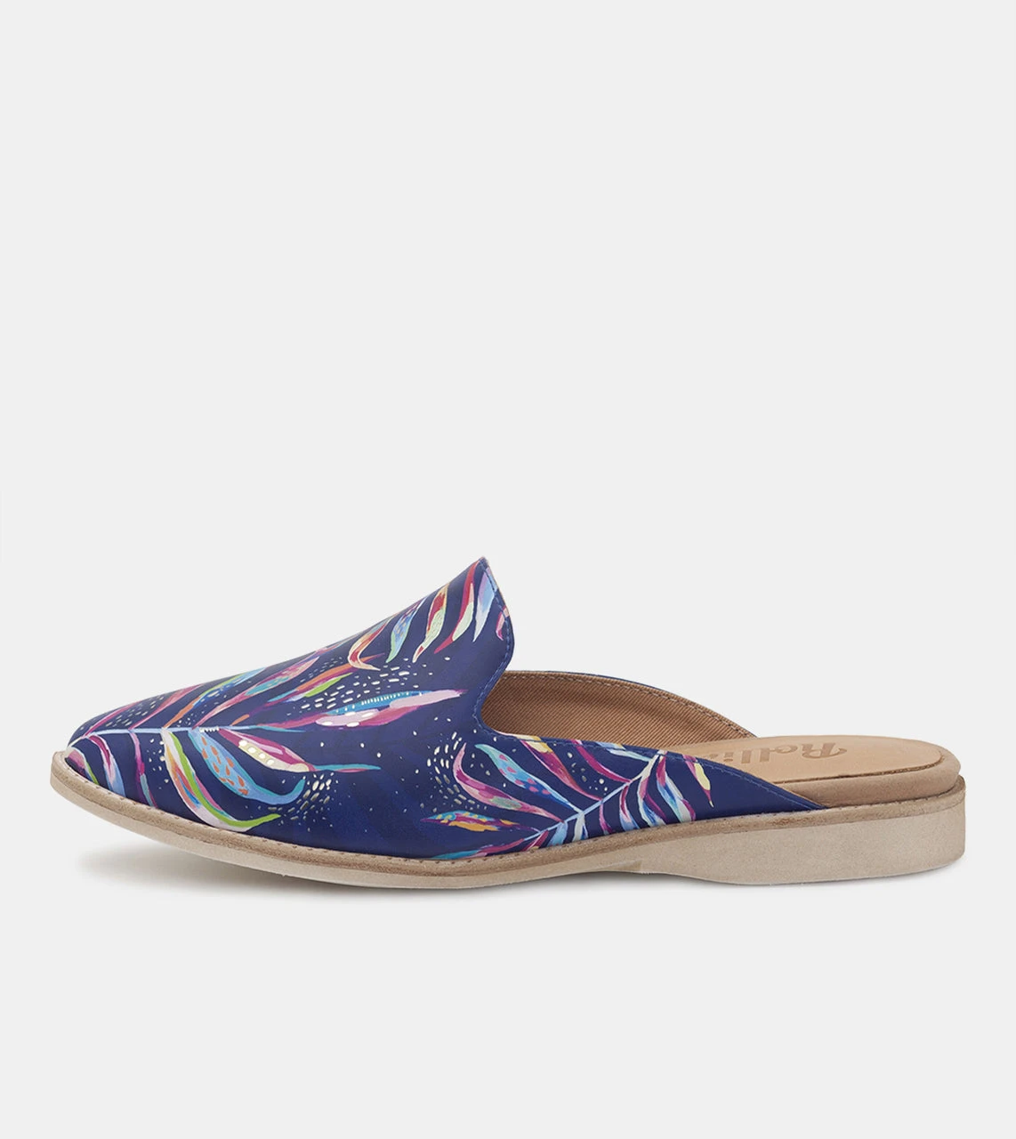 The Madison Mule Moonlight steps into those magical summer nights, with dark shades of purple, blue and metallic flecks mimicking the moonlight reflecting on the water at night. With a super soft leather upper and cushioned socks, you’ll never want to take these off!Â