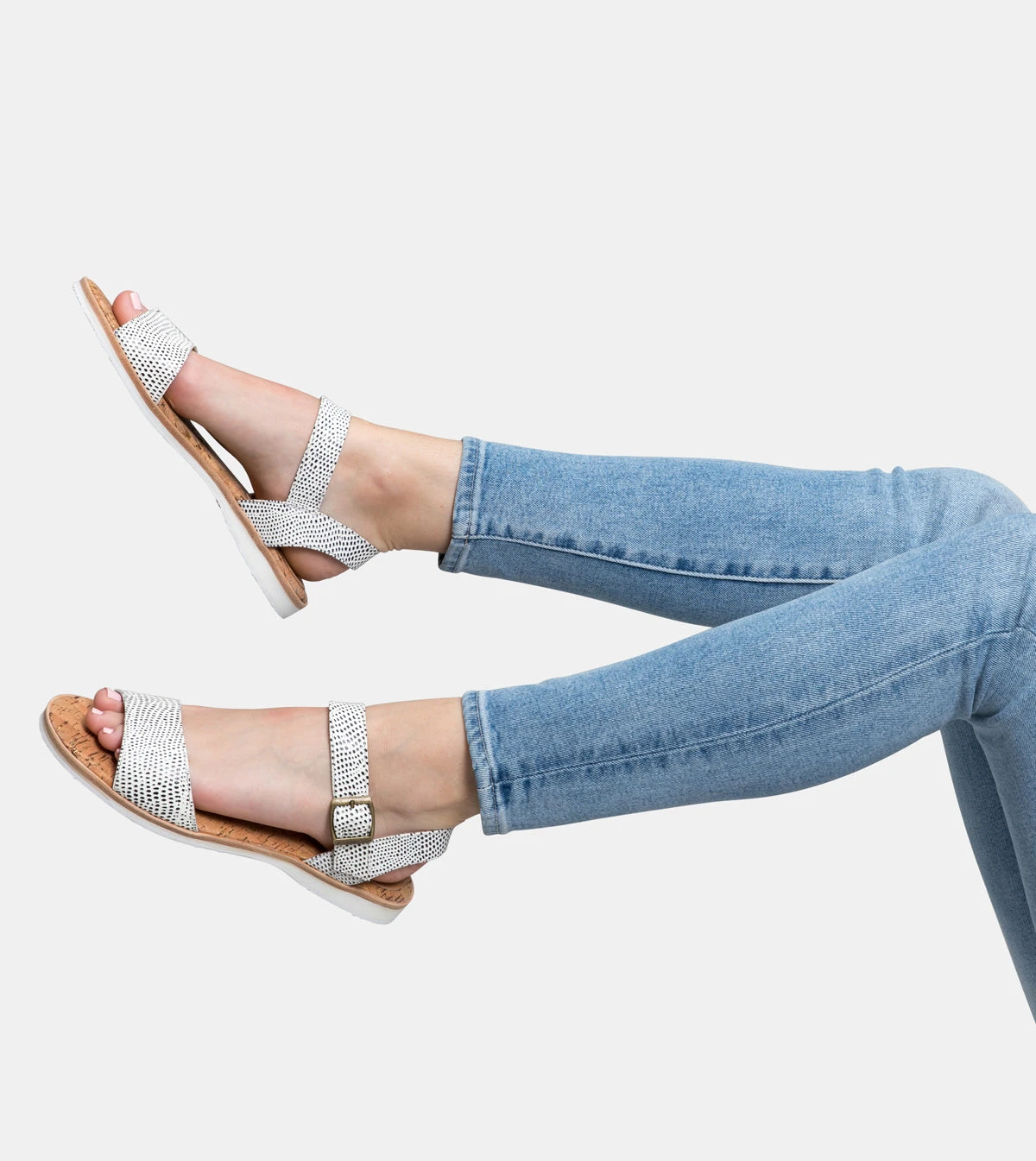 - Comfortable cork footbed supports and cushions feet.