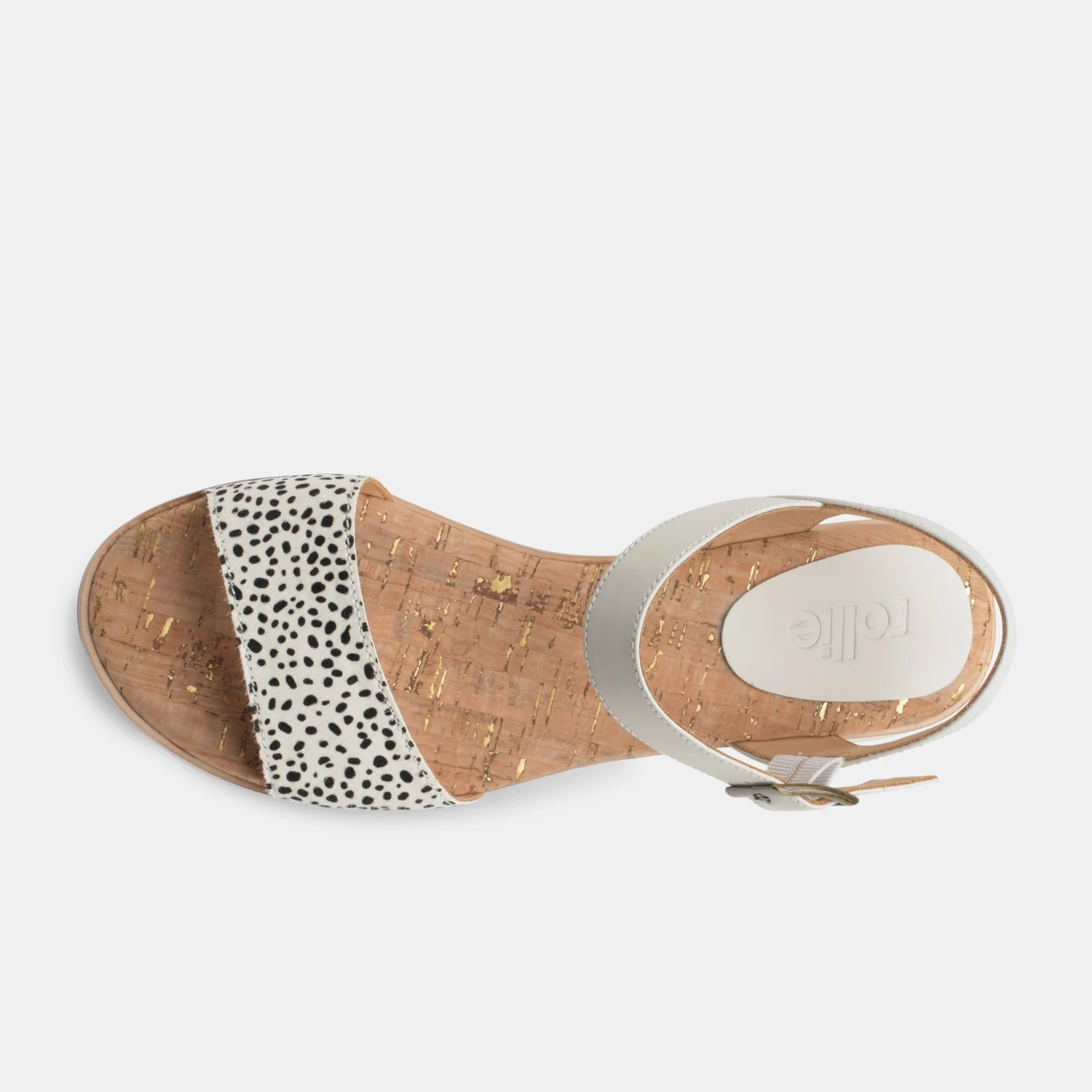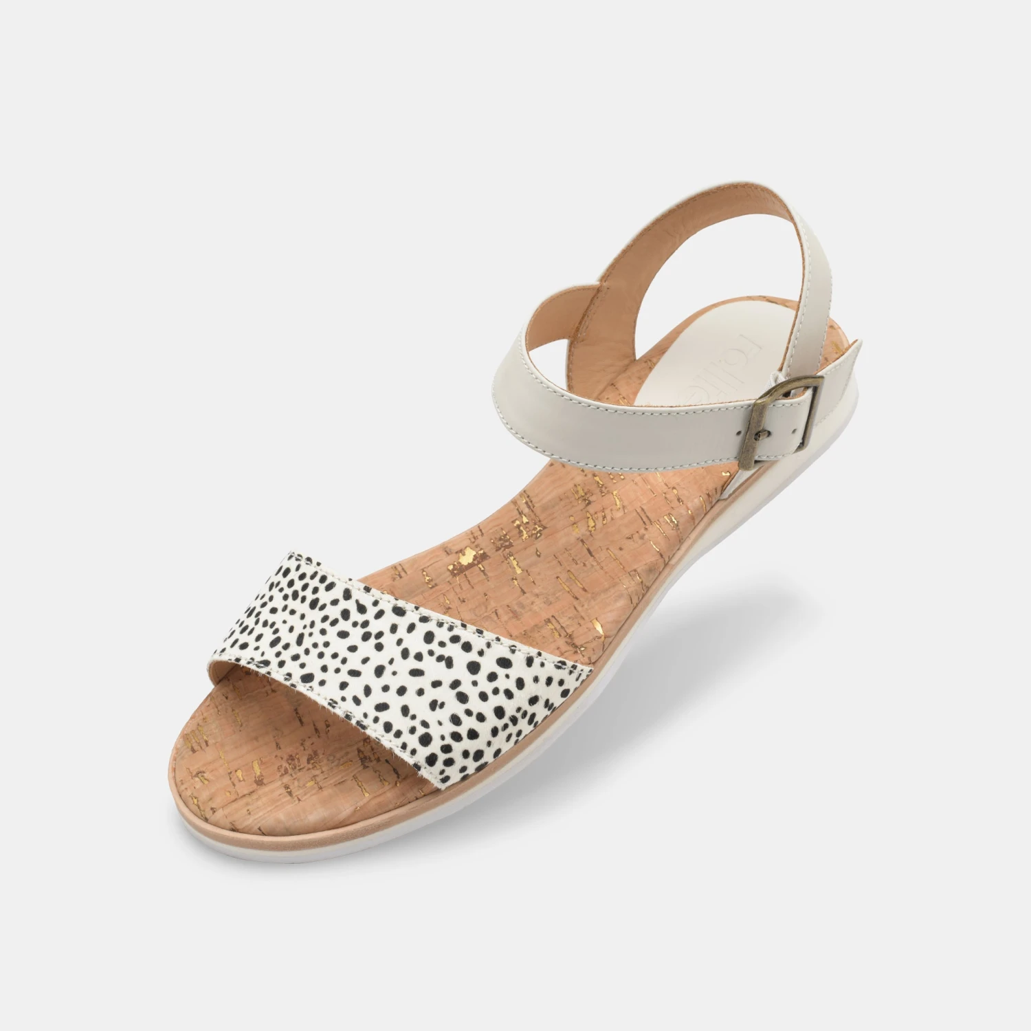 The Sandal Snow Leopard/White is a fun, lightweight summer sandal. With a leather ankle strap and contrast printed calf hair toe strap, this style is sure to be a favourite in the warmer weather. It’s super light EVA rubber outsole makes it perfect for all day comfort and wear and the cork footbed makes it breathable. Get ready to travel light in style.