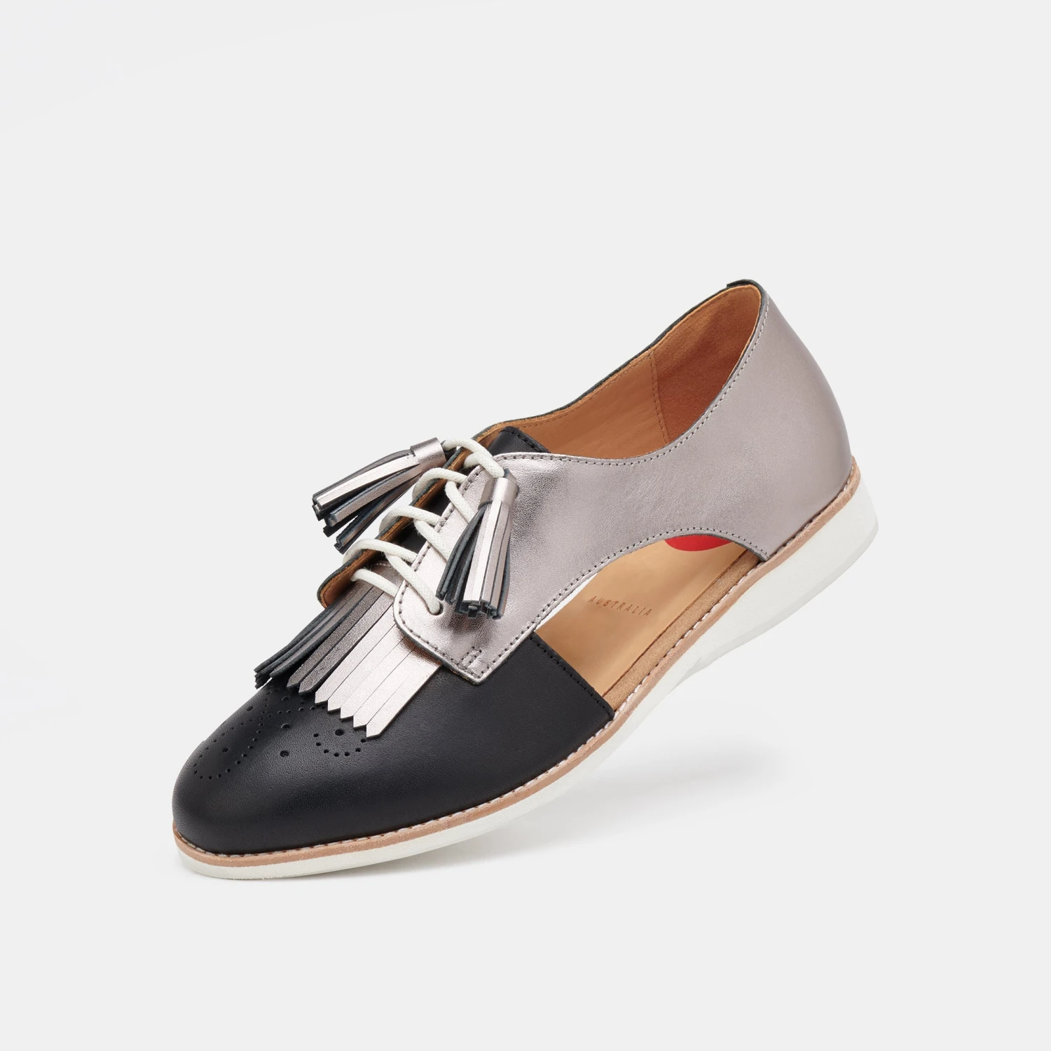 - Soft leather and metallic upper that moulds to your foot from first wear
