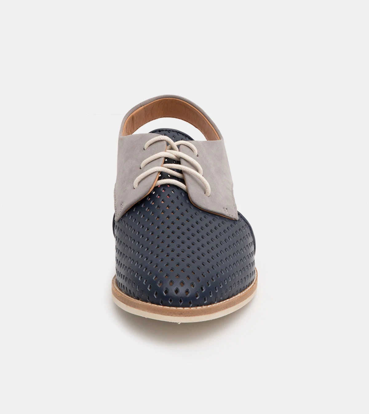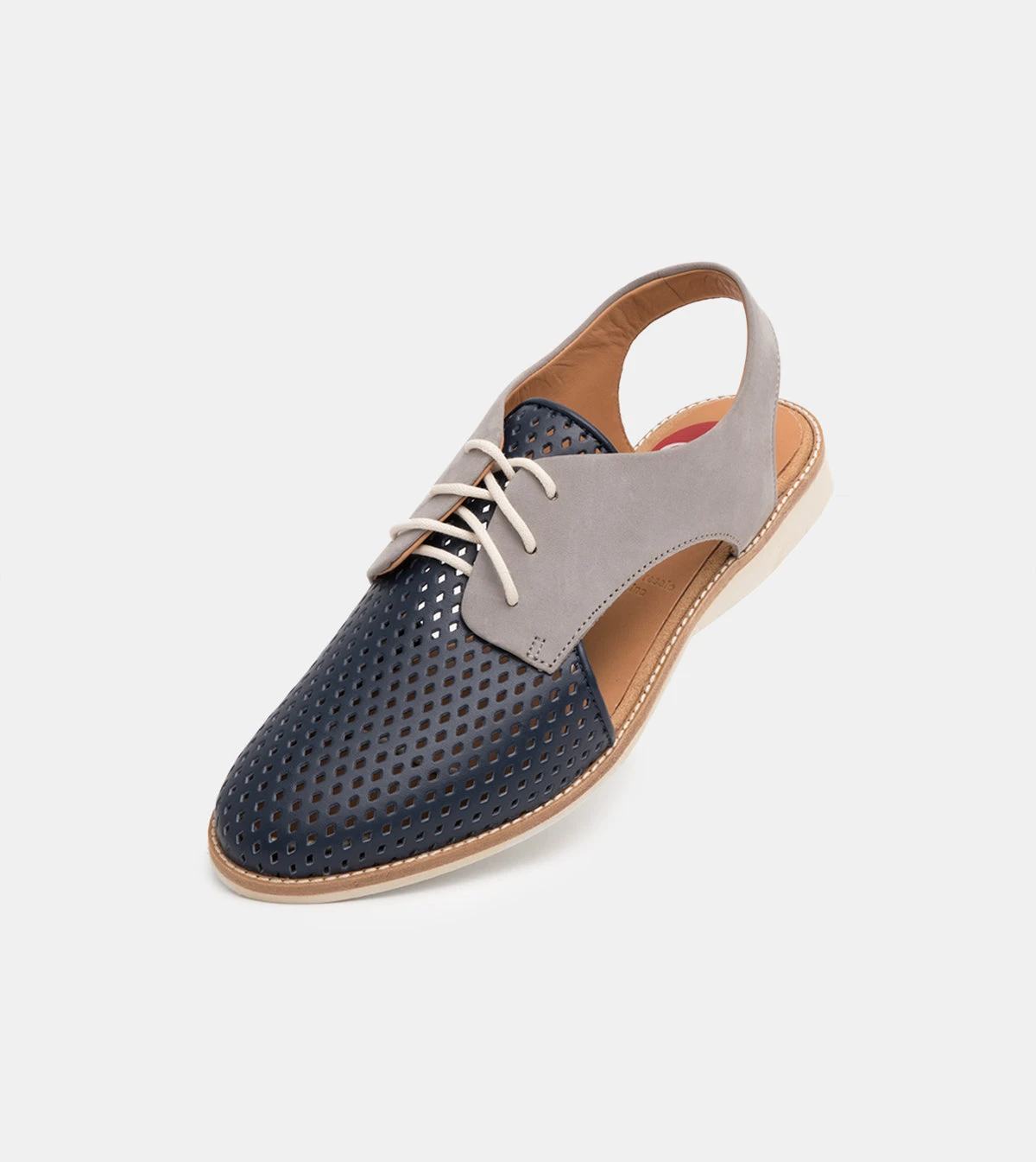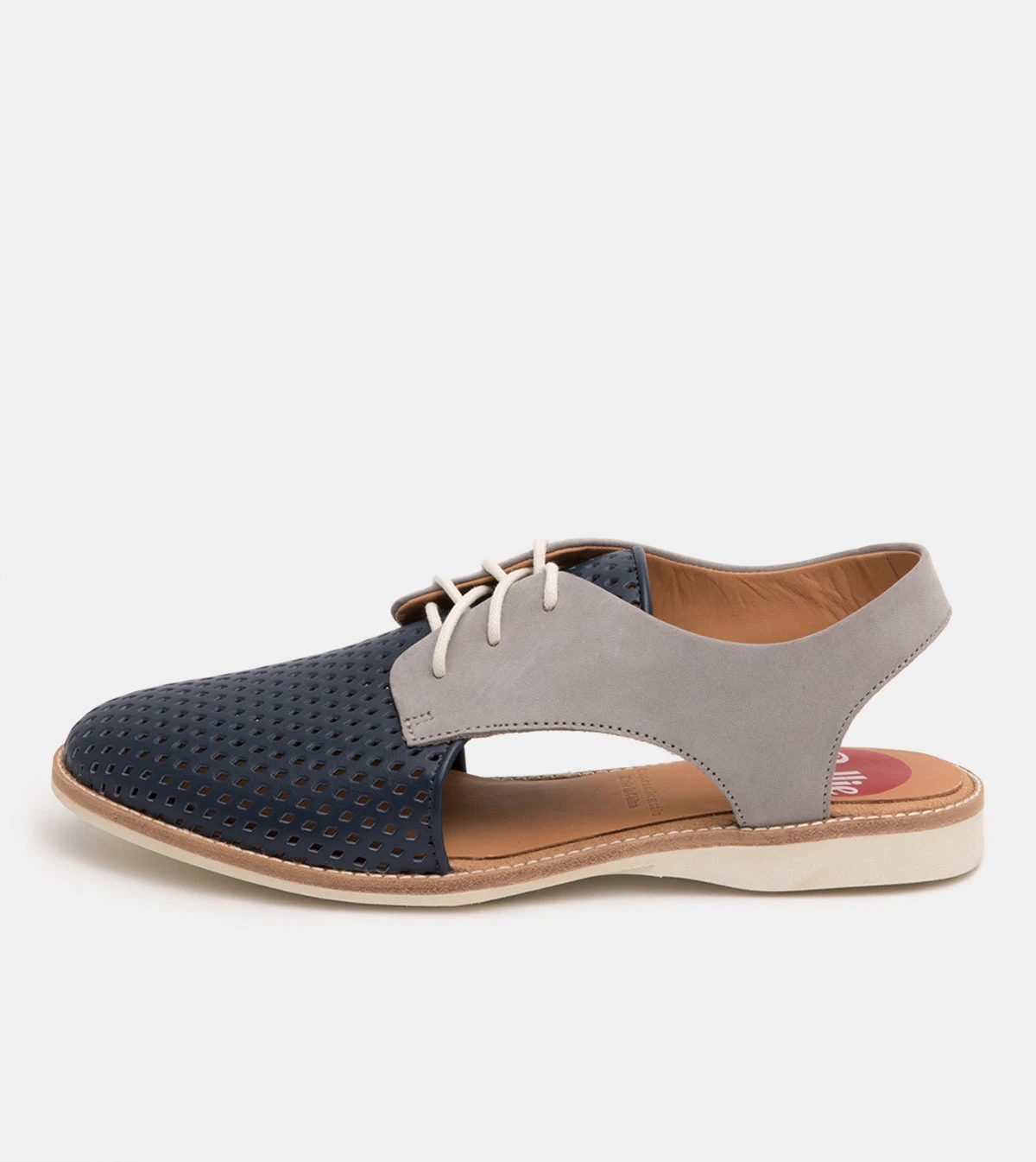 Need a new two tone shoe for the summer? Look no further than the Slingback Punch Navy/Grey! A nautical style bound to become a staple for your summer style. With a smooth leather upper, comfortable memory foam insoles and a light-weight EVA outsole, you’ll be travelling light whereever you go! Â