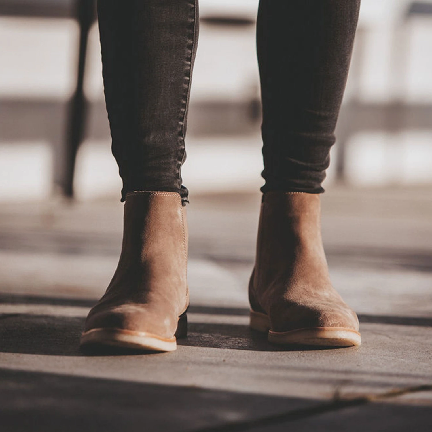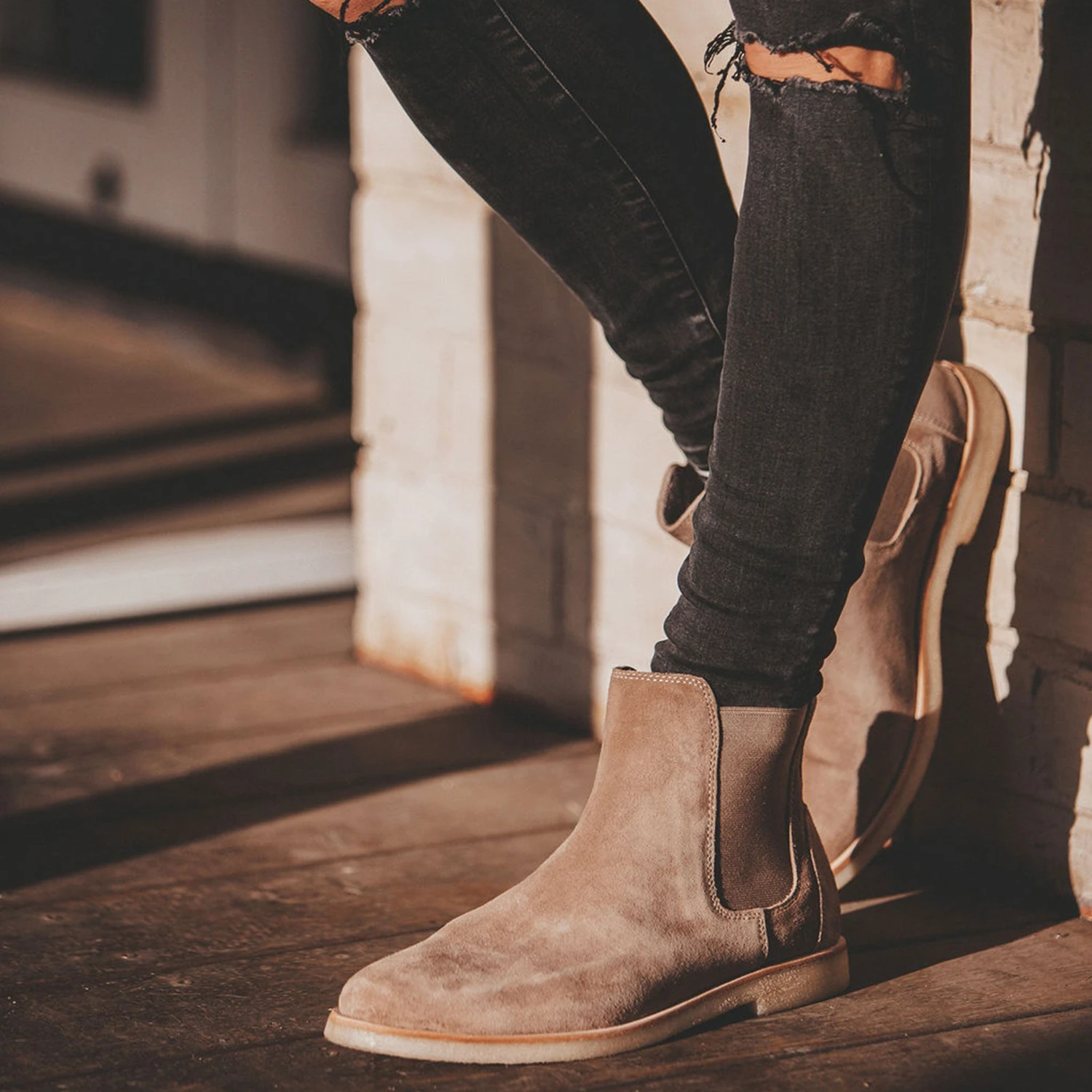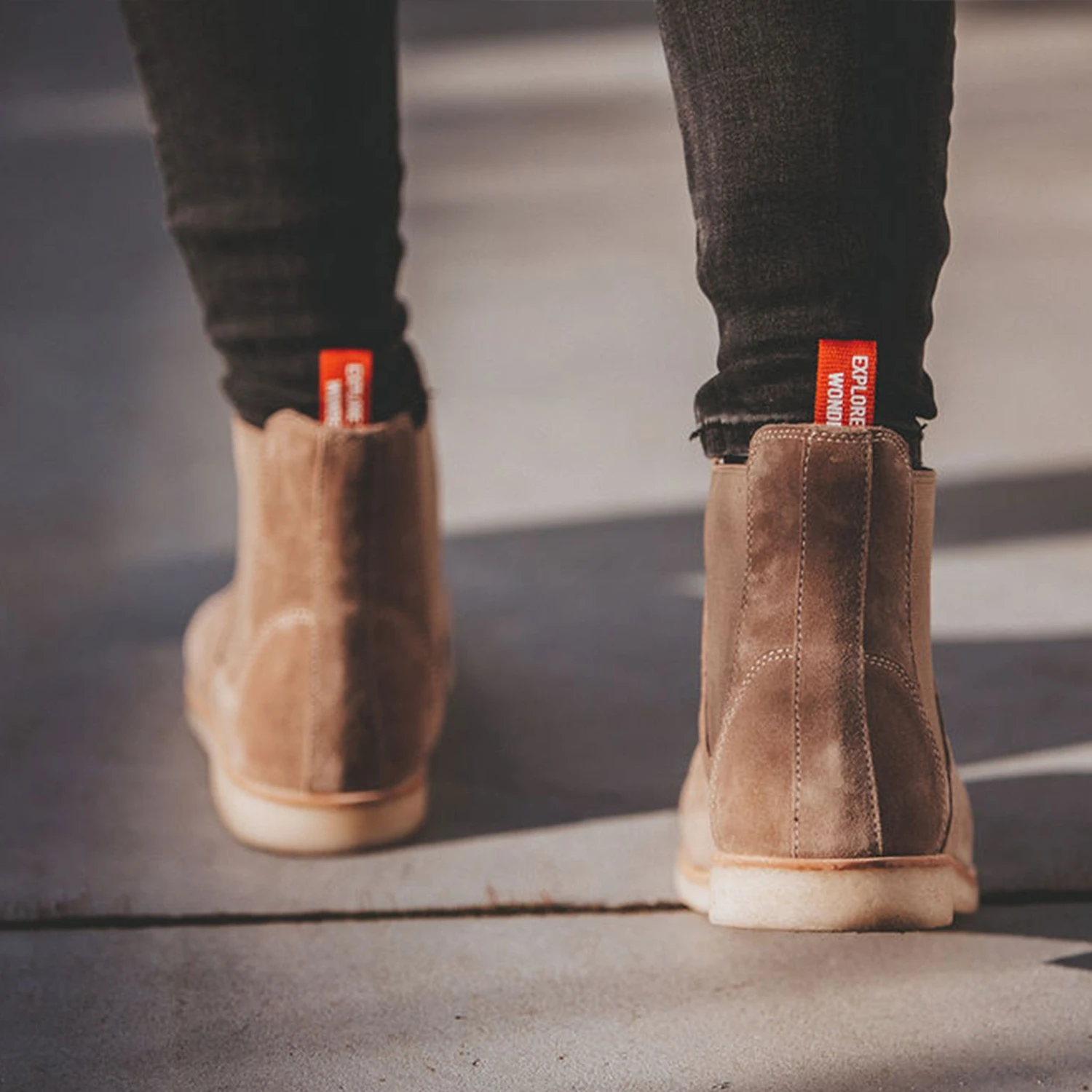 Get ready to step up your boot game with our new suave Myles Chelsea boot in a Light Taupe. Rising above the ankle, the Myles Chelsea boot sports a crepe outsole making each step more comfortable than the last with its cushioning effect. The pull tab and elastic gusset makes them easy to slip on at any time whether it’s for work or play.Â