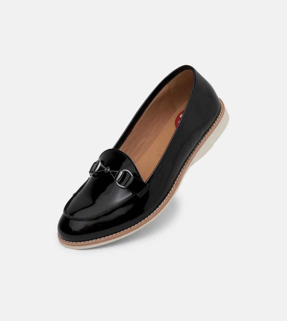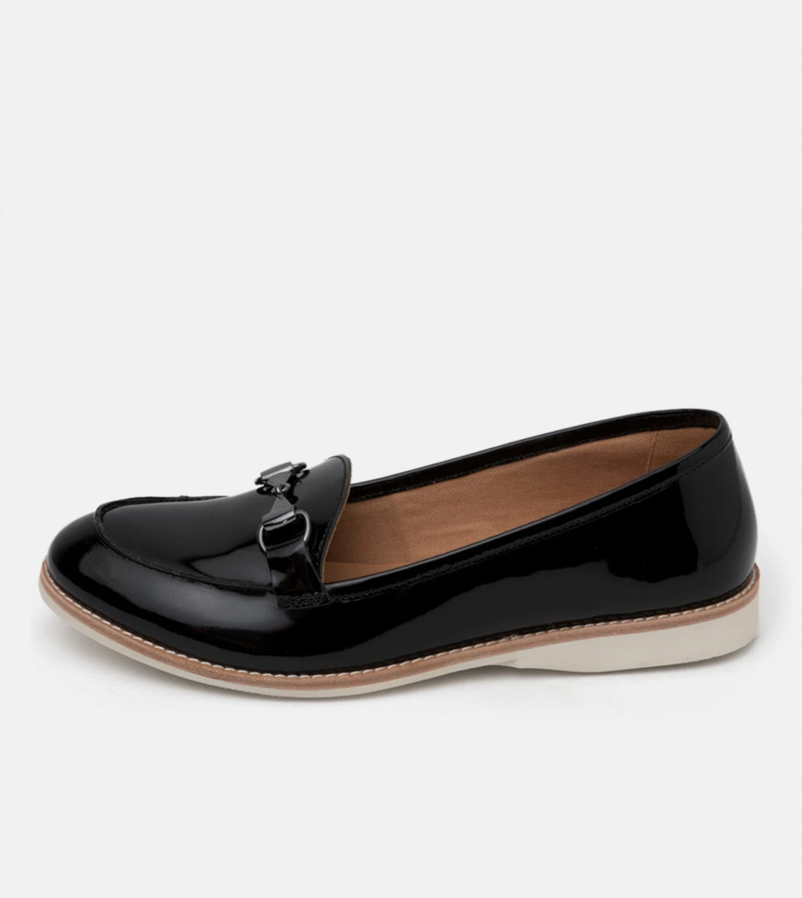 Looking for the perfect everyday shoe? Look no further, the Loafer Black Patent is here. In a beautiful black patent leather with a metal buckle detail, this shoe will go everywhere with you. Dress it up, dress it down, it doesn’t matter. This shoe works for you!