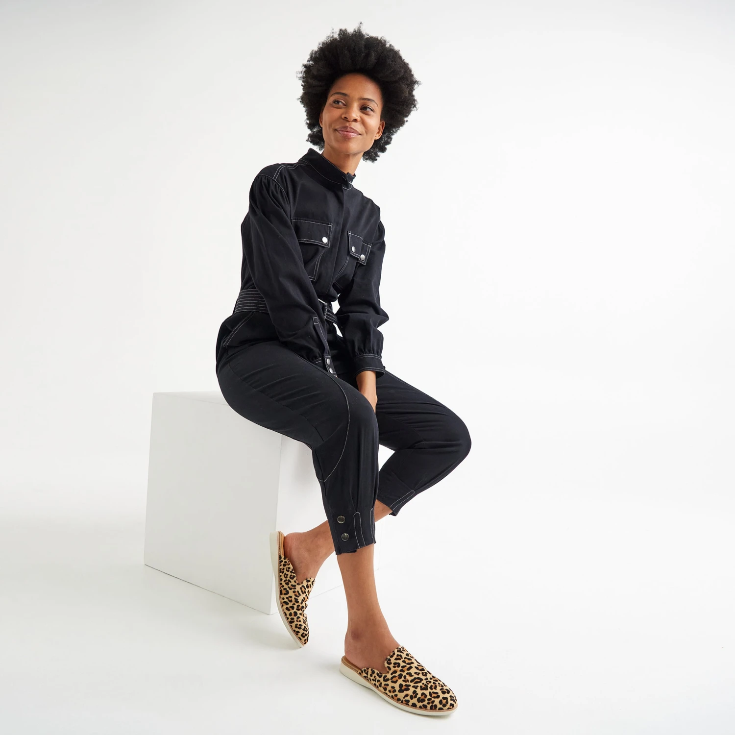 Slide into the wild side with the Derby Mule in a camel leopard pony print. These Mules will dress up any casual outfit without the hassle of a heel. Sleek and comfort is everything you need.