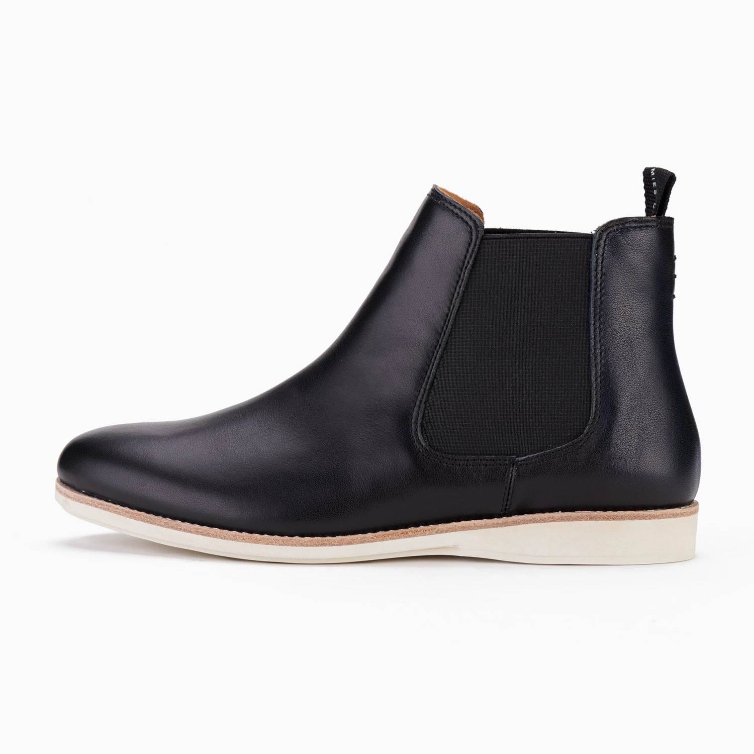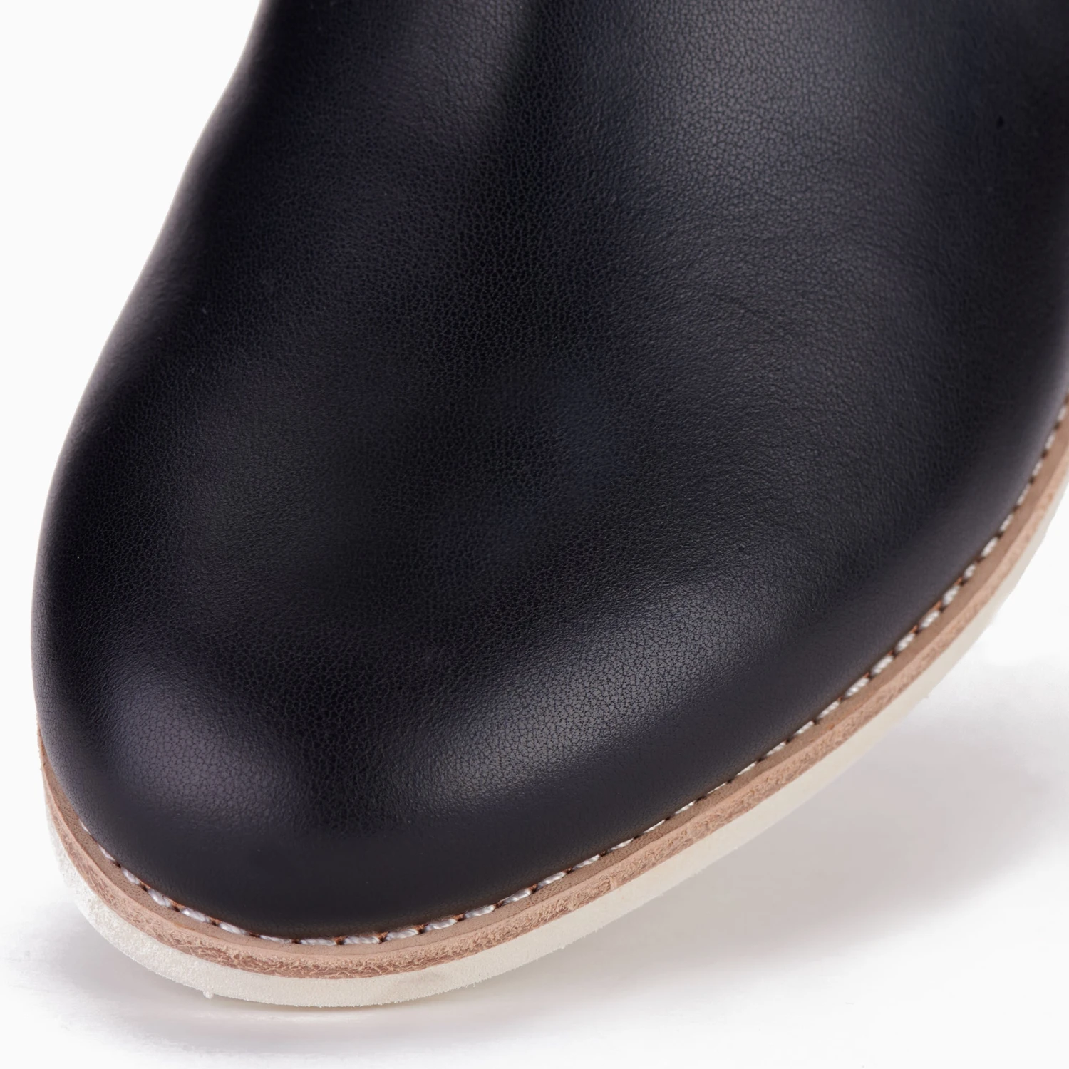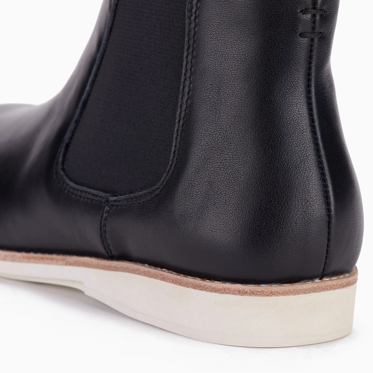 A winter basic that gets on just dandy with any snug look the cooler weather calls for. Smooth, premium leather boots with elastic that makes getting in and out a cinch. A cushioned insole for extra comfort sits on top of an ultra-lightweight sole. A little above-the-ankle luxe. The look of a boot. The lightweight comfort of a sneaker.