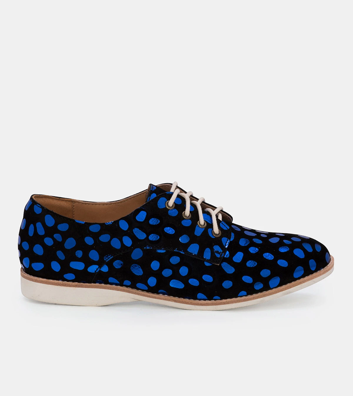 A metallic colour pop take on a fave print. Like all Rollie shoes, the Derby is comfy and light, the perfect shoe for all day wear.