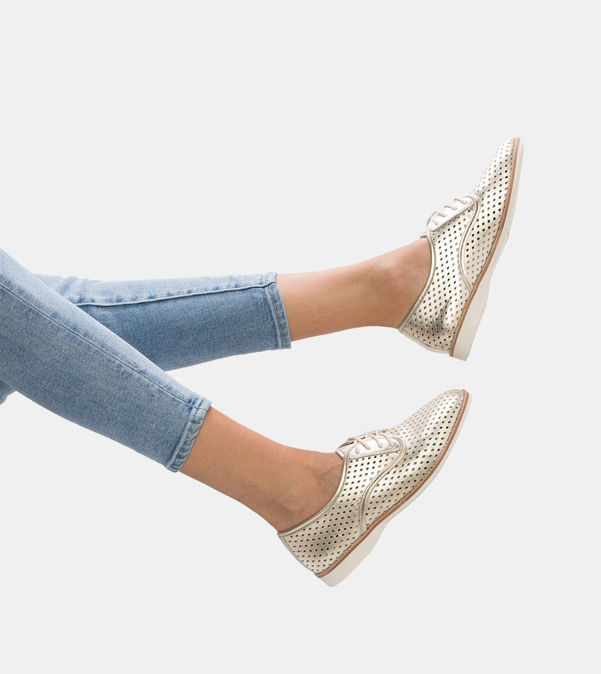 - Punch hole detailing gives a wink of skin or colourful socks.