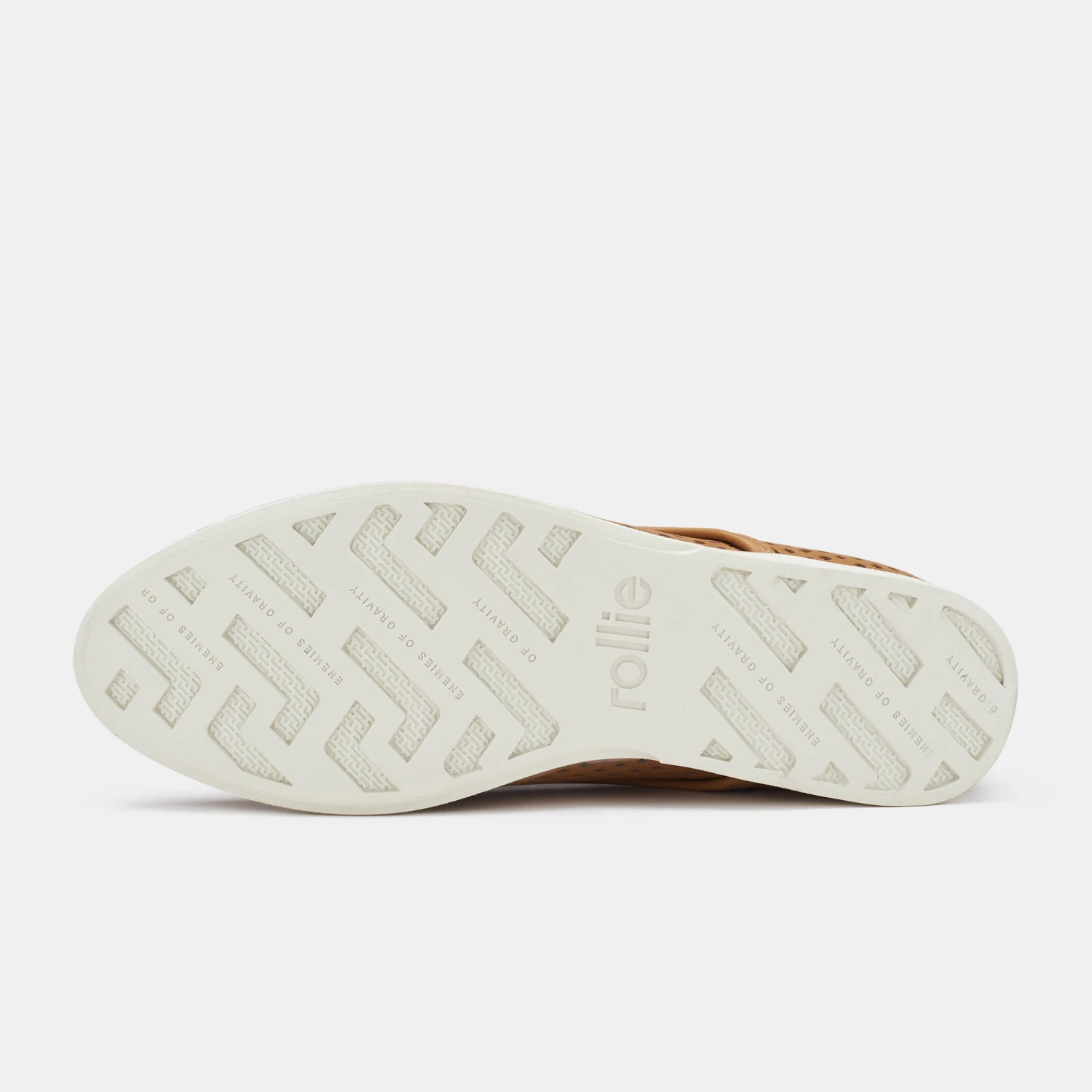 Tan punch leather upper with black lining underneath, like all Rollie shoes, the Derby Punch Overlay Pink is comfy and light.¬â€