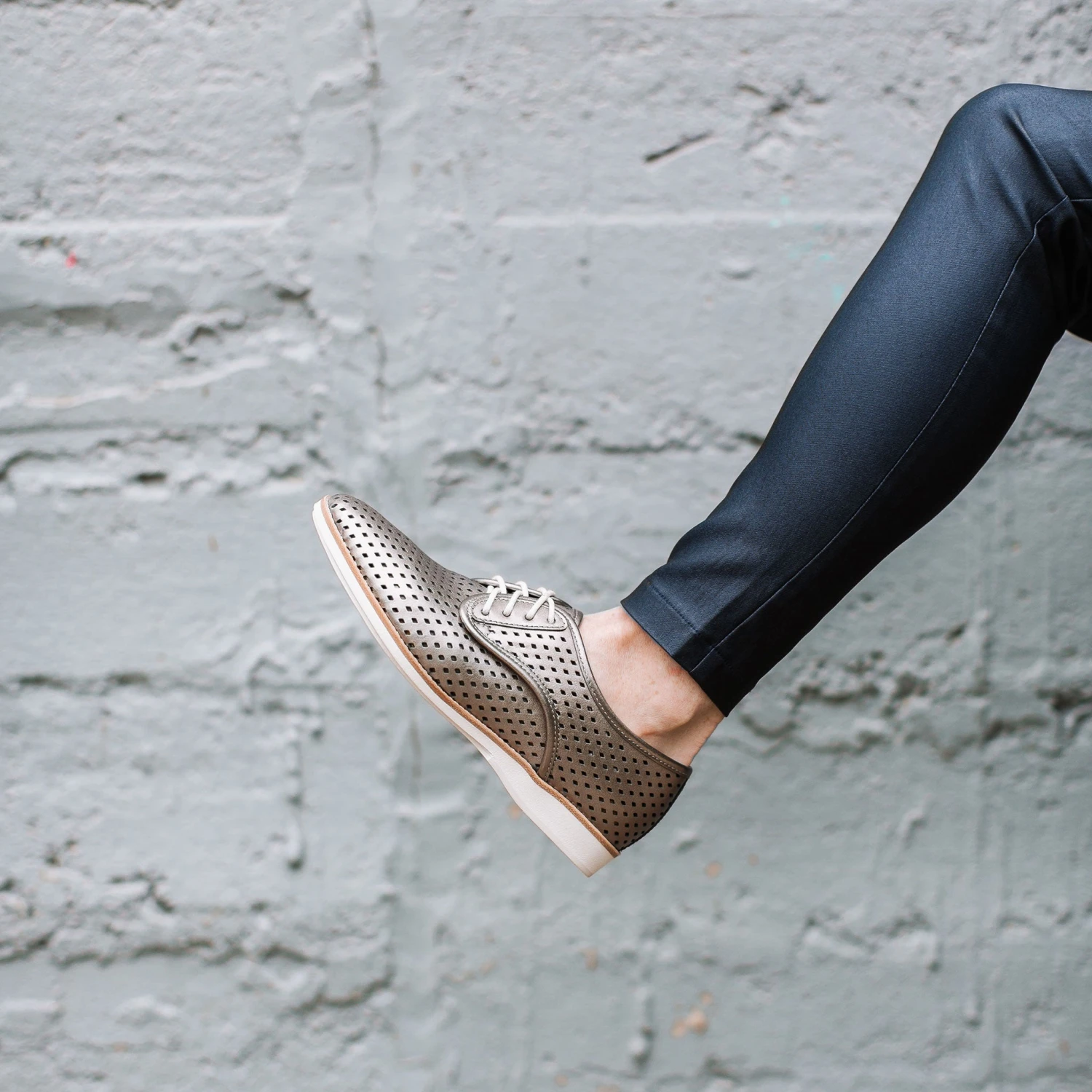 The Derby Punch Pewter has soft leather with punch hole detailing to keep your feet feeling cool in summer. Like all Rollie shoes, the Derby Punch is comfy and light, the perfect shoe for all day wear.