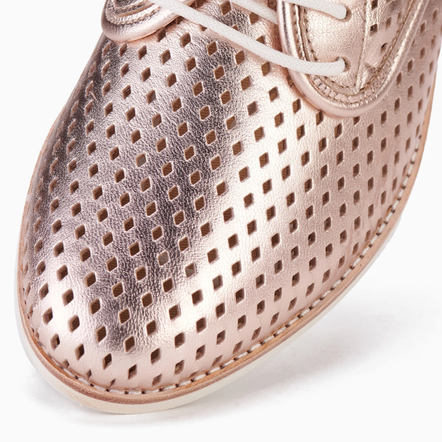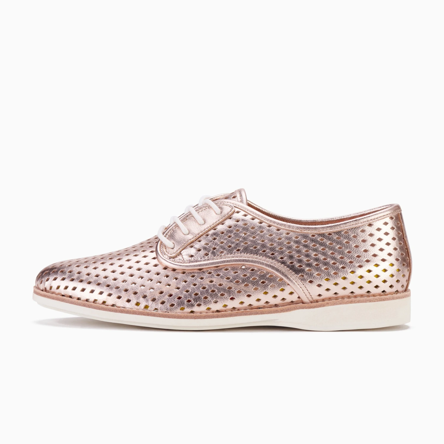 Shimmering super soft punched on-trend metallic rose gold leather. You know, just to make sure your on-point look gets seen. Inside, super comfy like-walking-on-a-cloud memory foam innersoles hug your feet like they’ve been designed just for you. This Rollie is a summertime fave. But made to light up any season, really. Soon to be the golden child of your shoe collection.