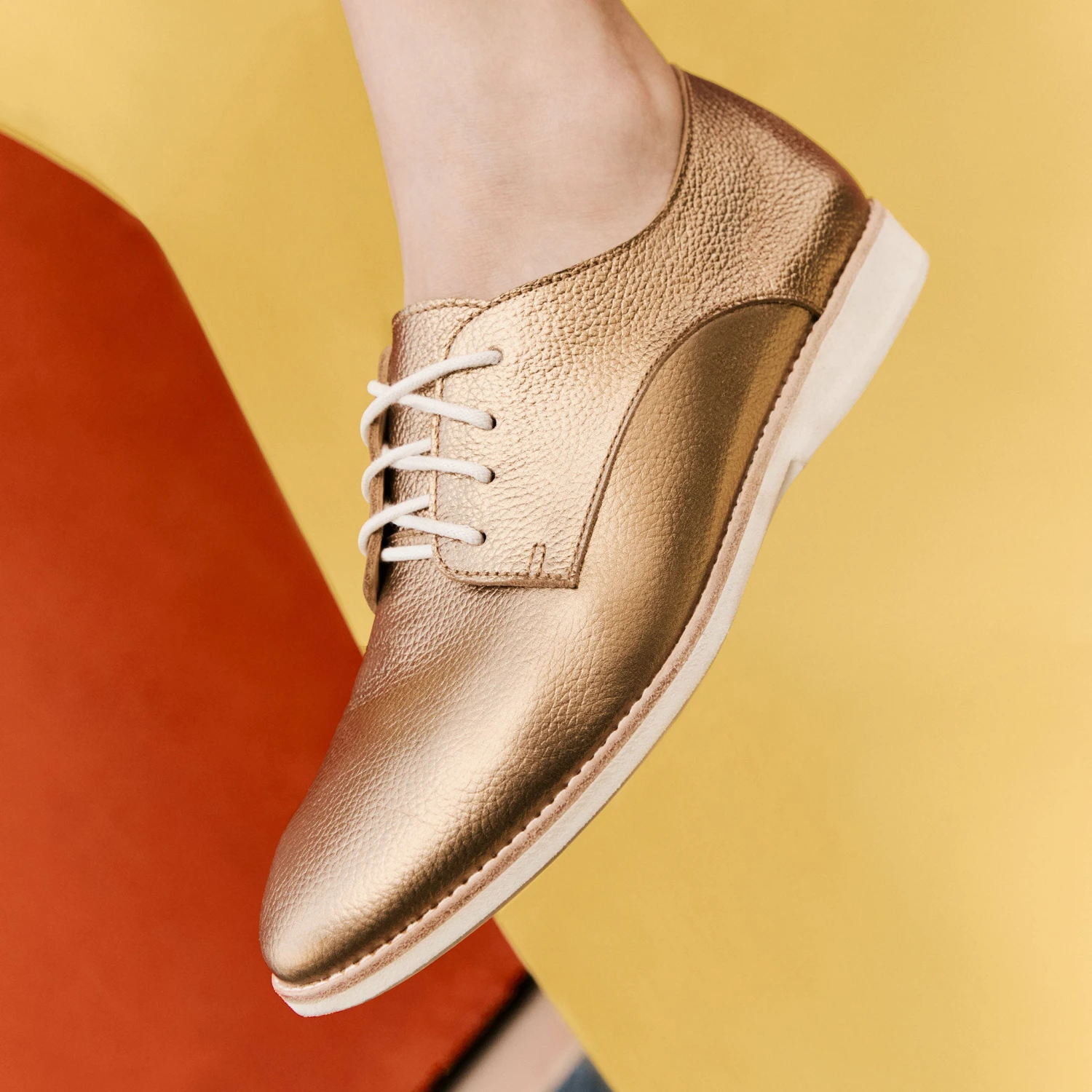 - Soft metallic bronze leather upper that moulds to your foot from first wear