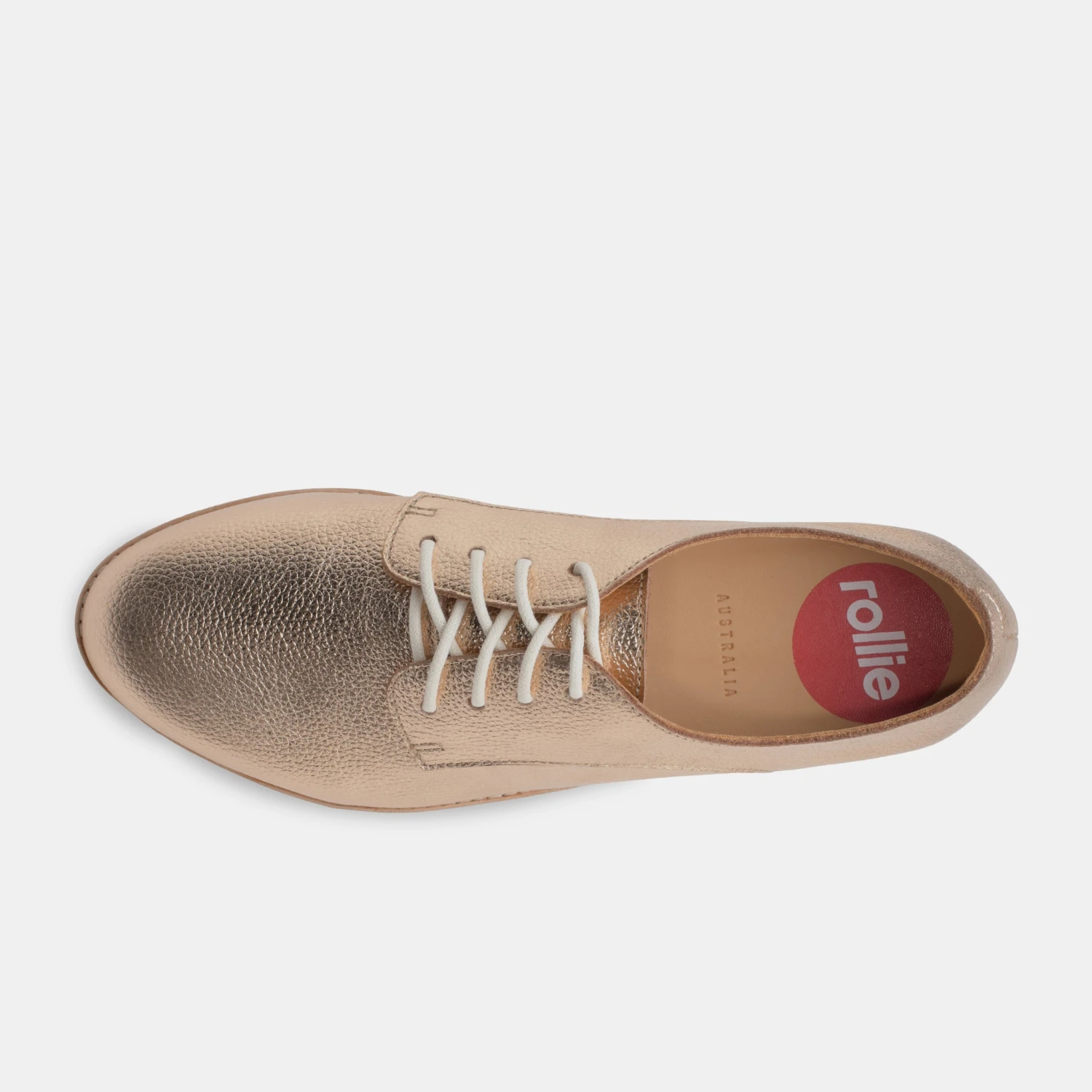- Soft metallic rose gold leather upper that moulds to your foot from first wear