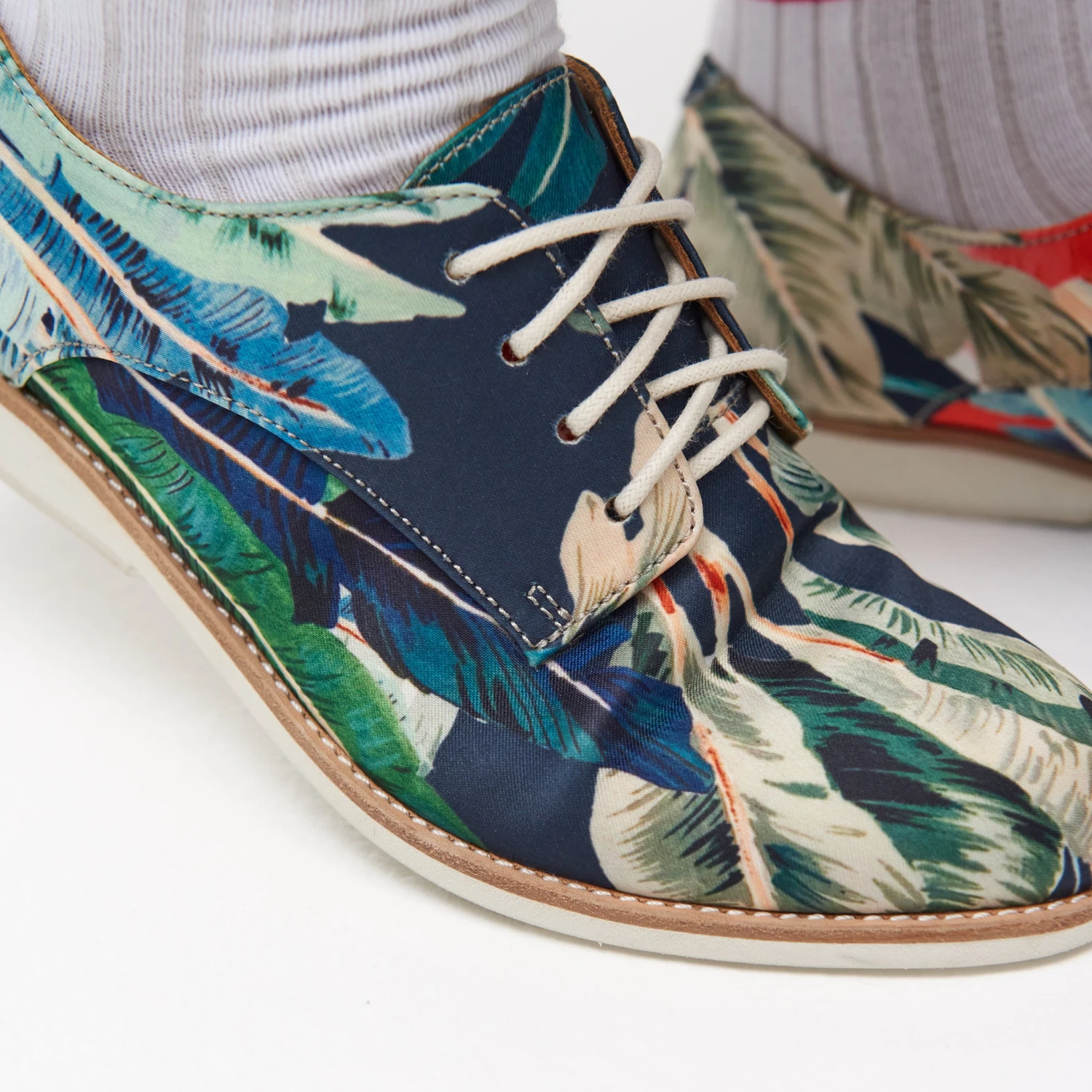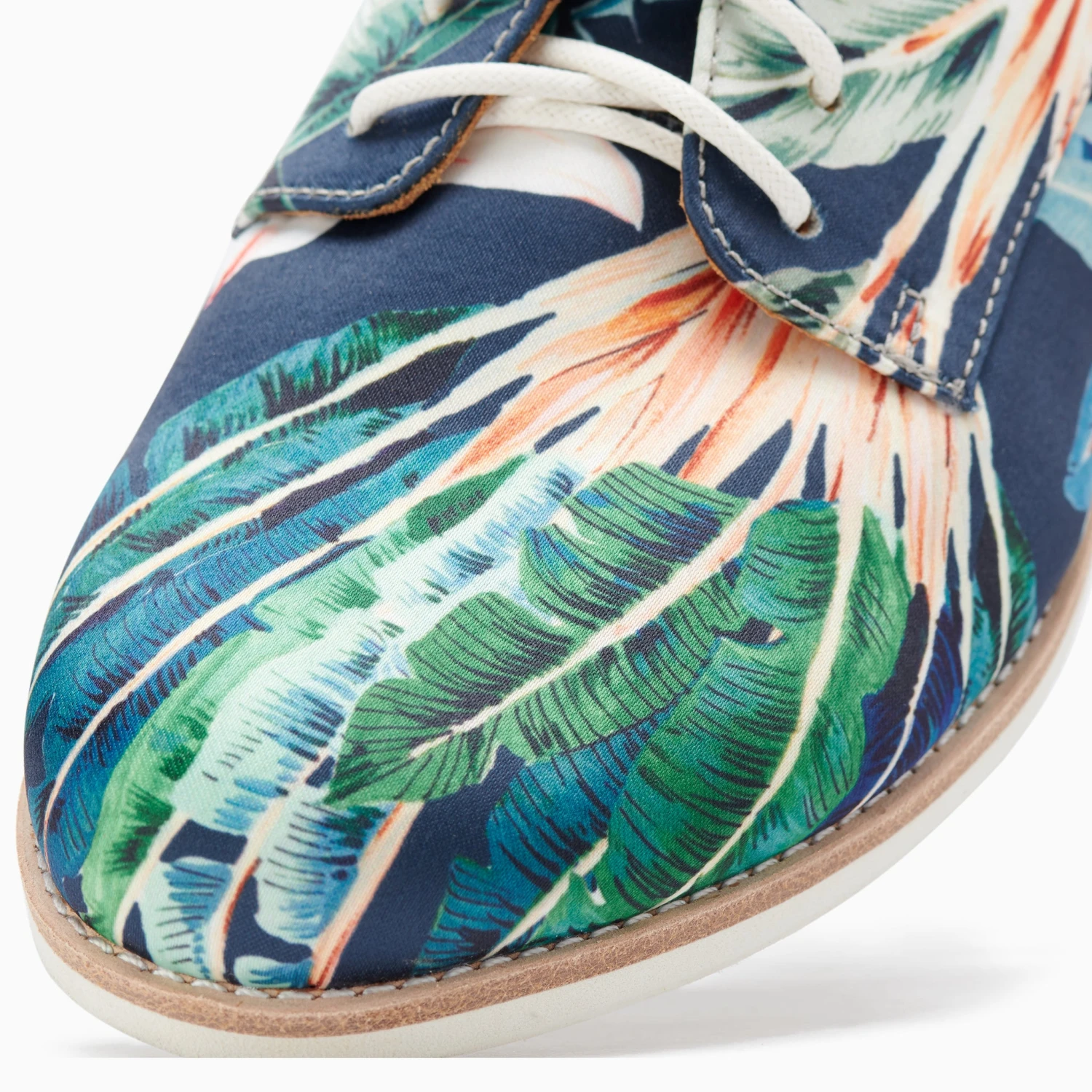 - Soft fabric upper with tropical print that moulds to your foot from first wear