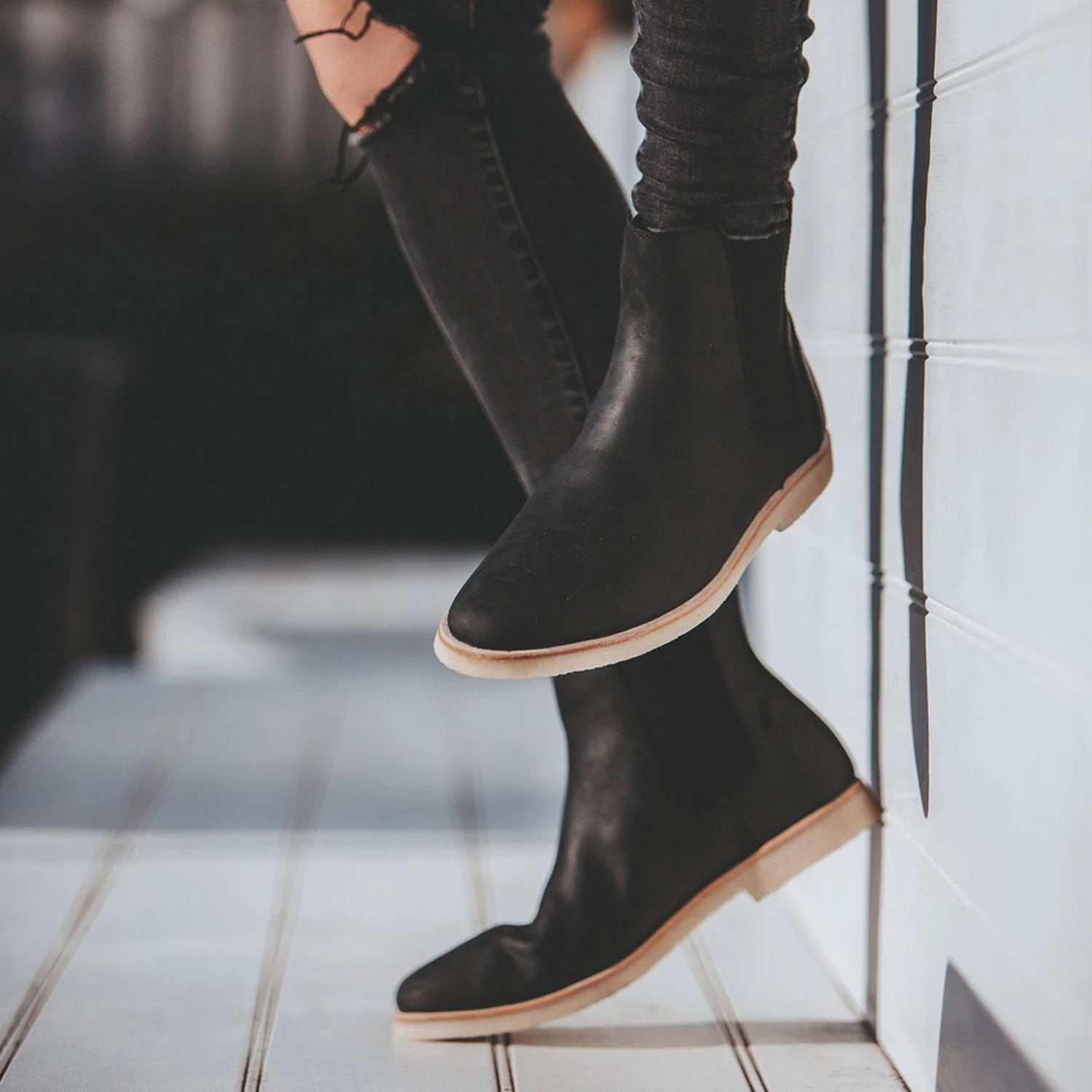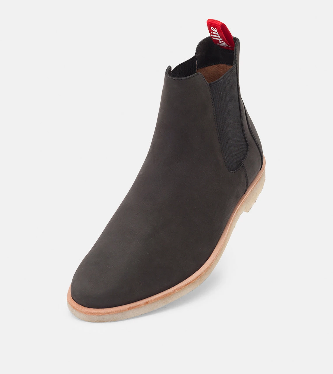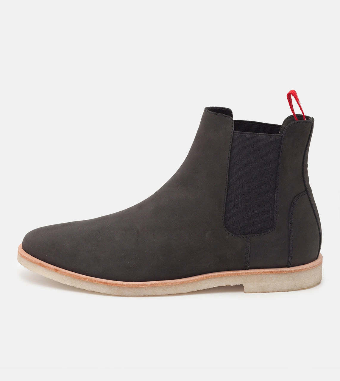 Get ready to step up your boot game with our new suave Myles Chelsea boot in a smooth Black leather. Rising above the ankle, the Myles Chelsea boot sports a crepe outsole making each step more comfortable than the last with its cushioning effect. The pull tab and elastic gusset makes them easy to slip on at any time whether it’s for work or play.