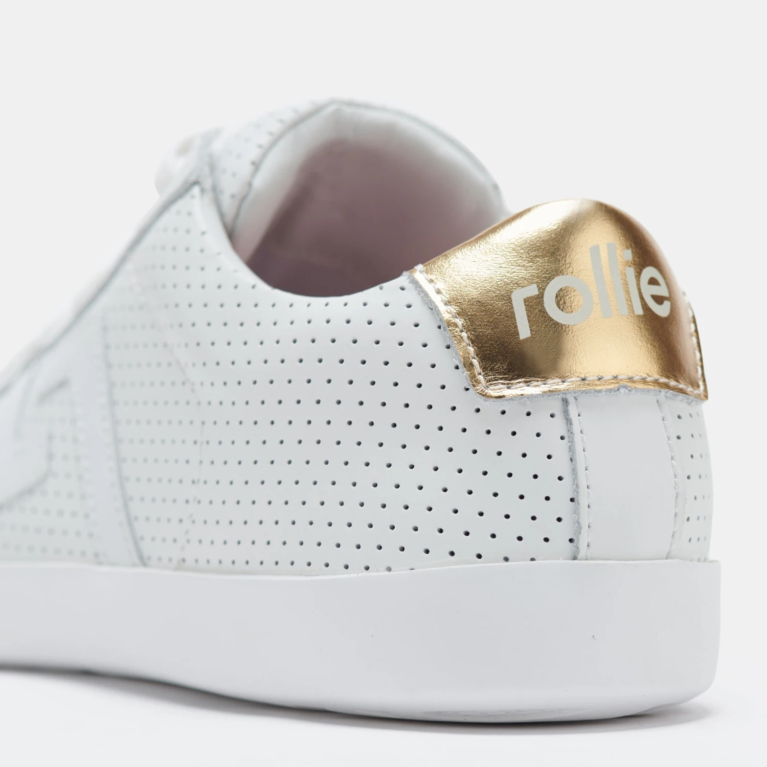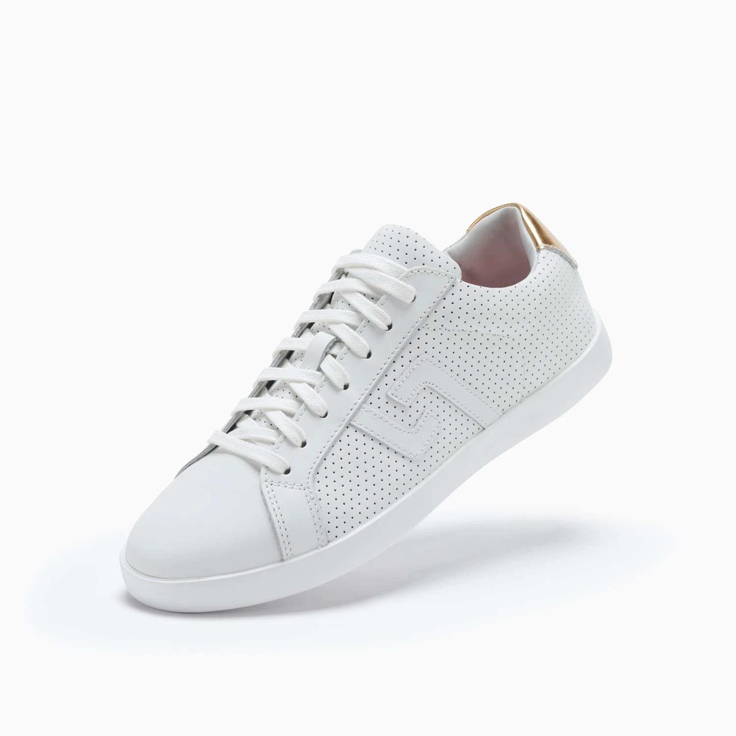 - White pin punch leather upper that moulds to your foot from first wear