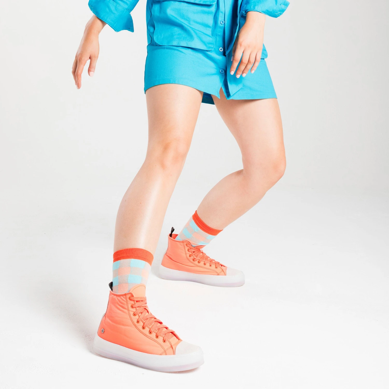 - Turbo orange nylon uppers with contrasting suede toe and trims