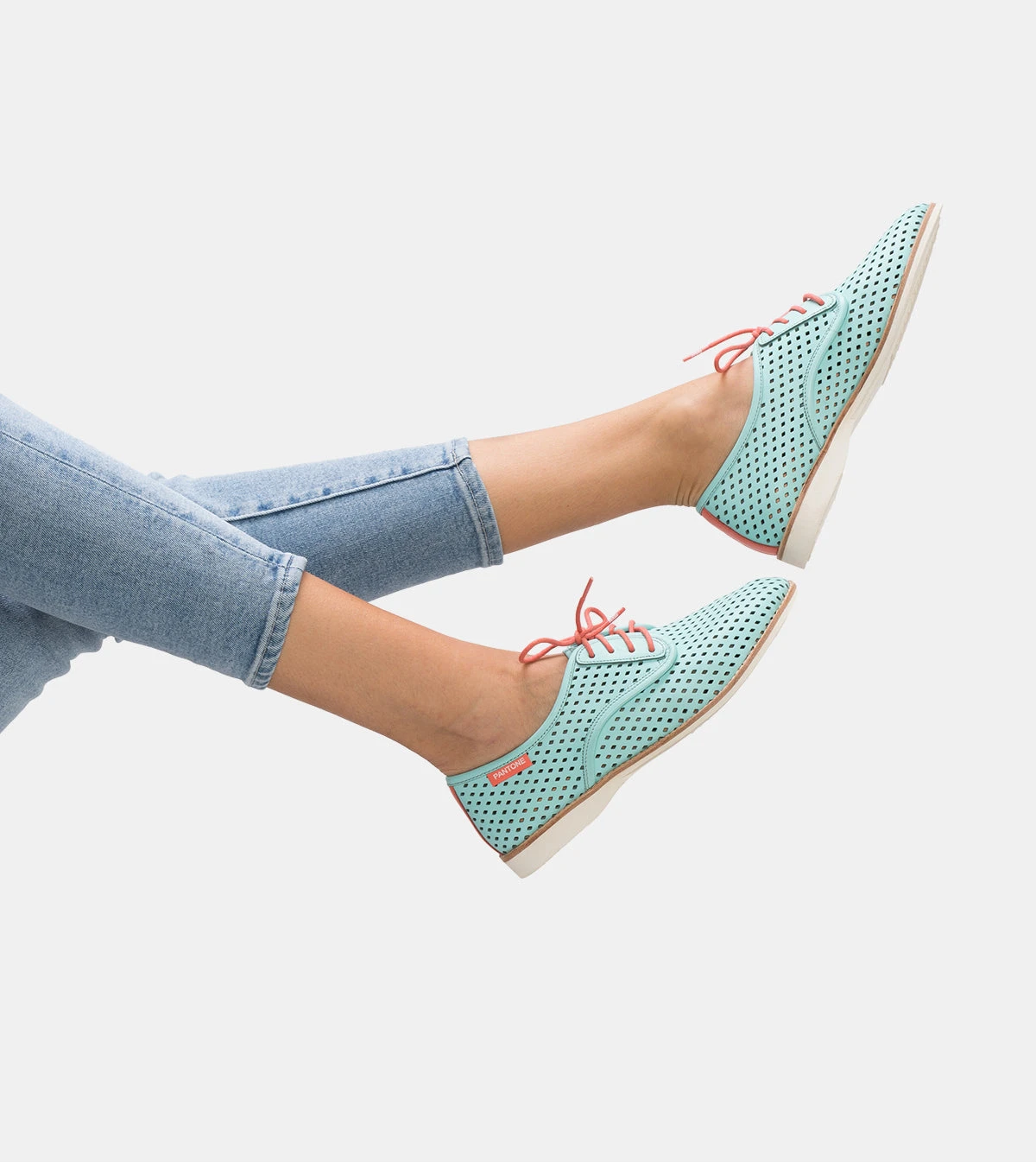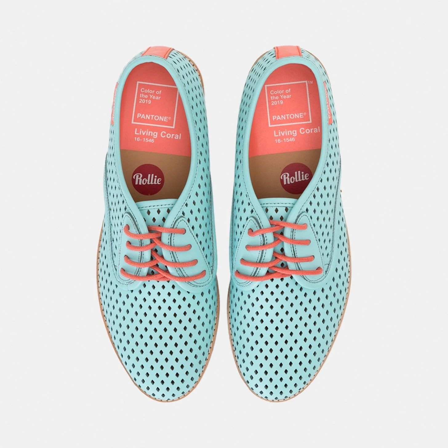 A fearlessly fresh pairing of Pantone’s crisp Limpet Shell with a cheeky kick of Living Coral. Sporting some itty-bitty diamond punches and our signature light and comfy build, these babies will keep you feeling fresh and looking fine.