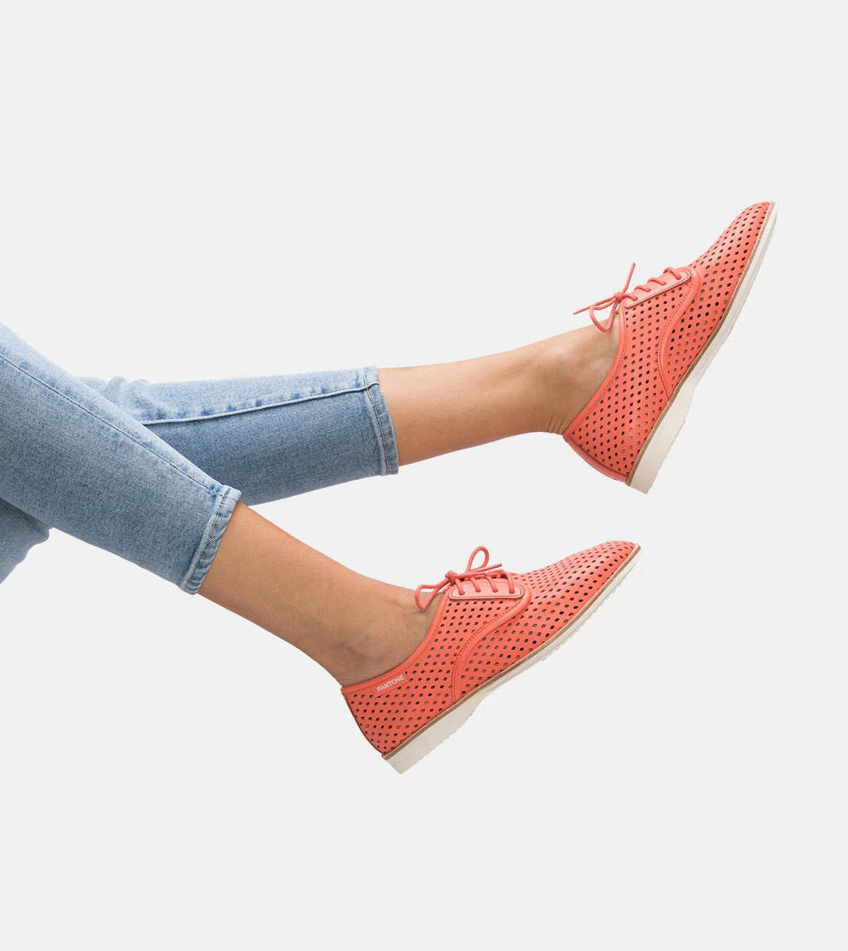 Celebrating Pantone’s 2019 Colour of the Year in all of its glory, these bold Living Coral themed kicks practically radiate warmth and energy. Sporting our famously light and comfy build and decked out with itty-bitty diamond punches, these charmers bring an empowering kick of colour to any occasion.
