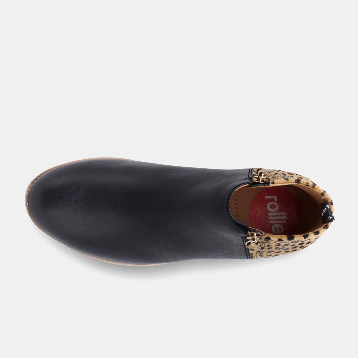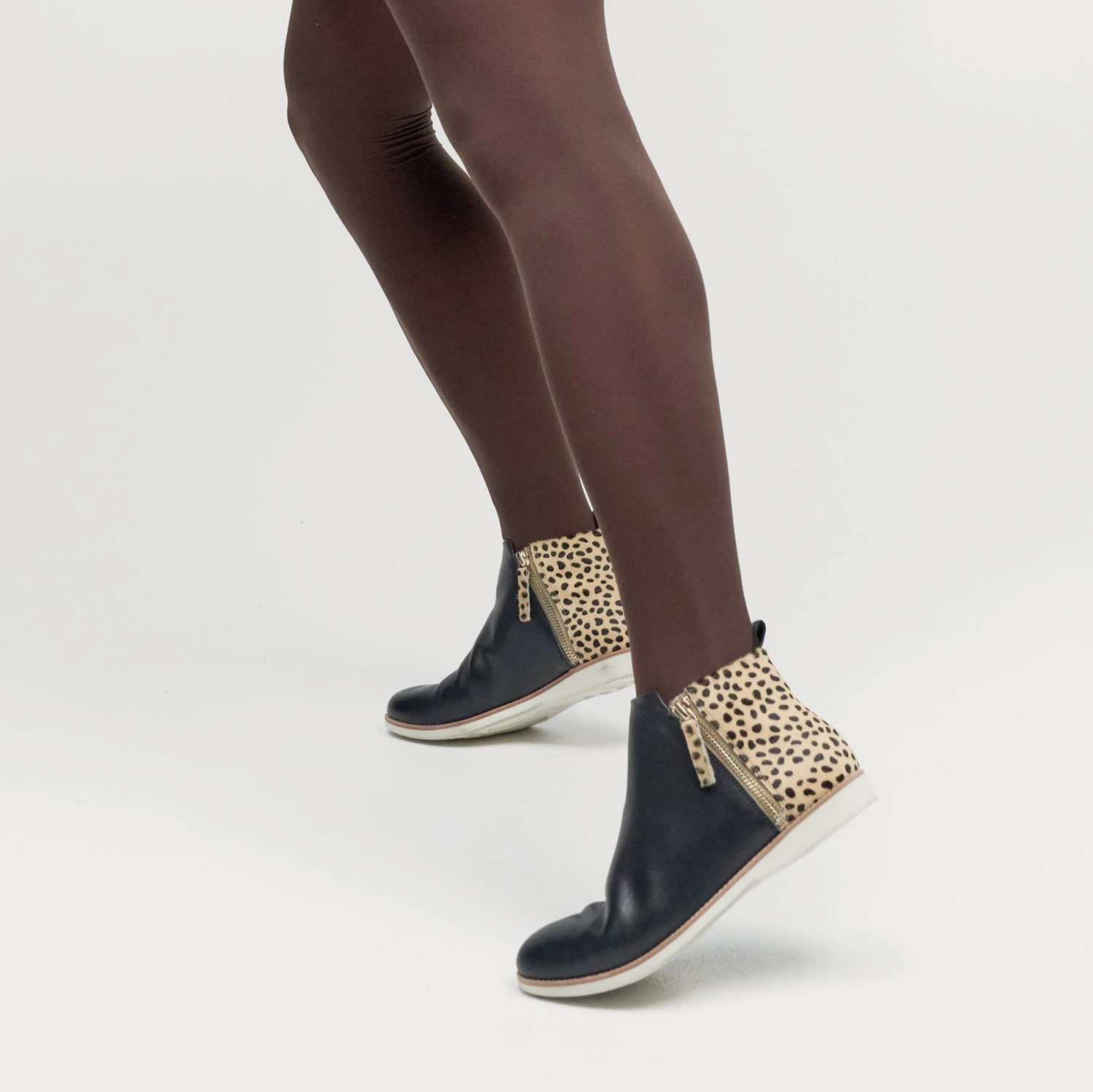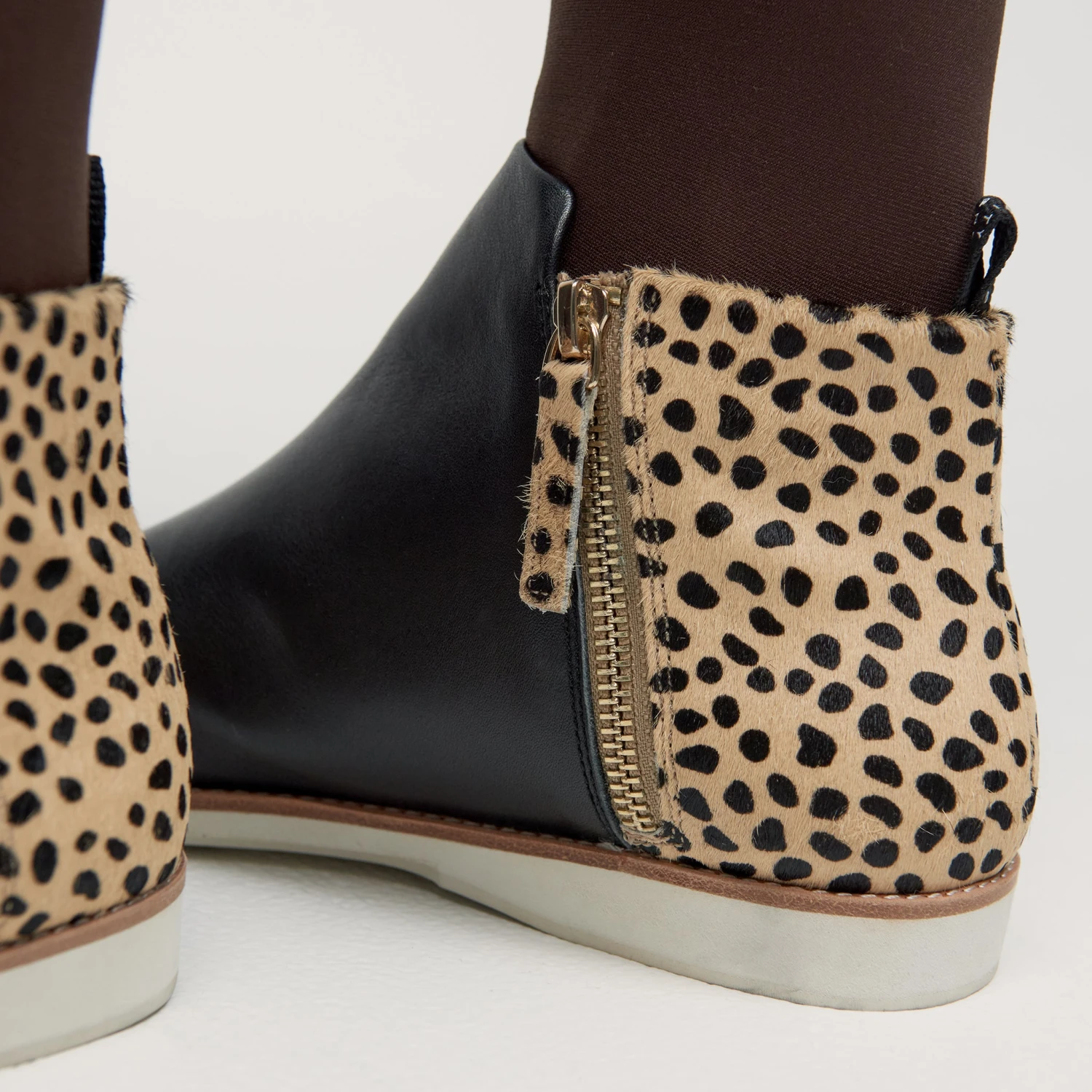 Let out your animal instincts with this funky winter essential. Gorgeous black leather with a cheeky cheetah pony hair finish. Like all Rollie shoes, the Side Zip Boot is comfy and light, the perfect shoe for all day wear.