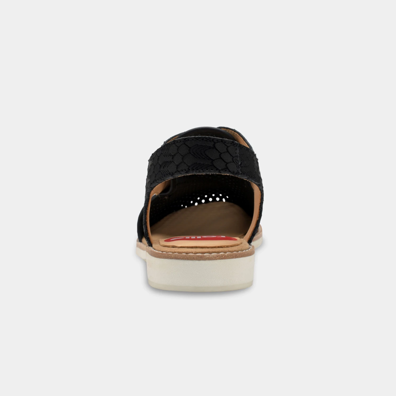 Made with soft black leather with punch hole detailing and an open back slingback construction, this take on a classic will keep your feet feeling cool in summer. Like all Rollie shoes, the Slingback Punch is comfy and light, the perfect shoe for all day wear.