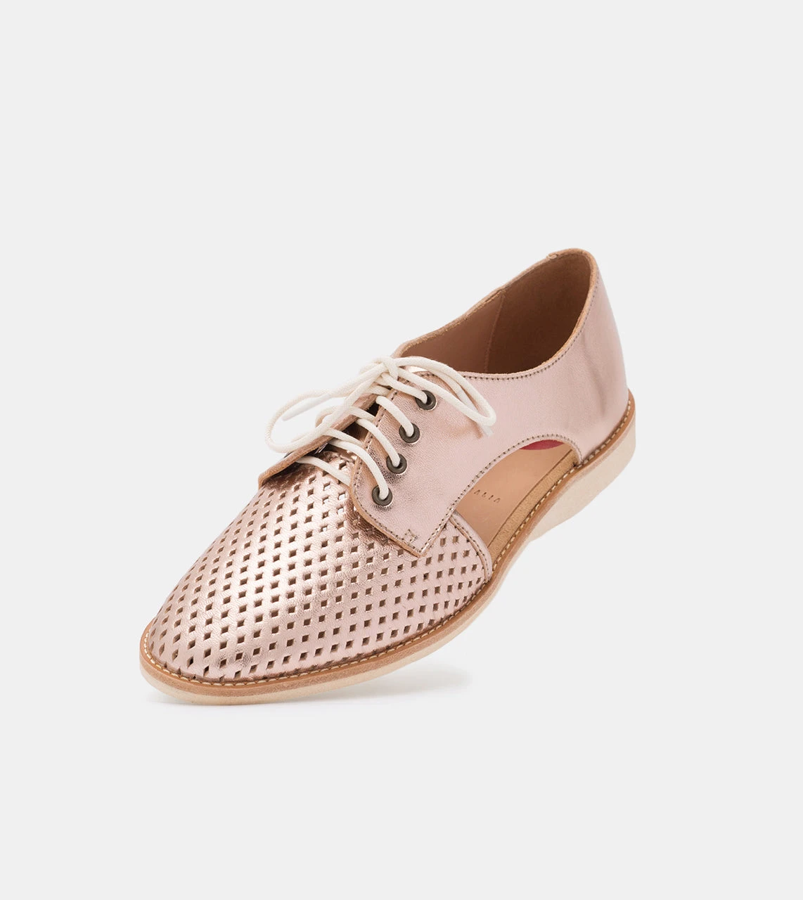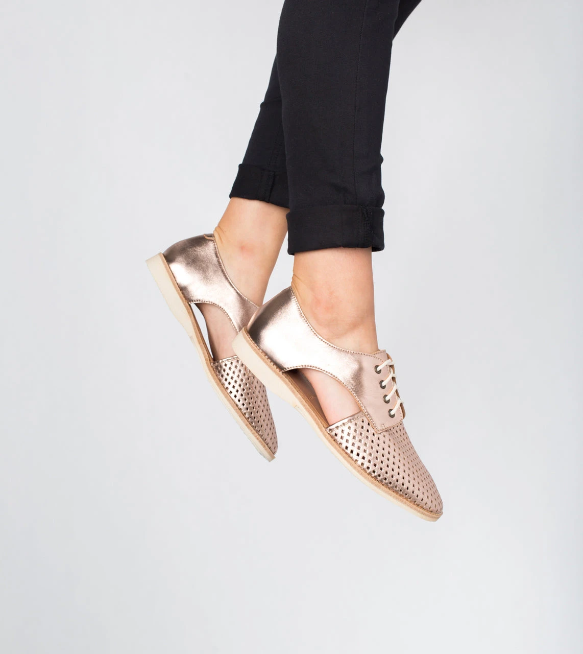 You get the best of both worlds this summer with the Sidecut Punch! It’s the fun side cut combined with our breathable punched-out detailing. Rock it in the hottest colour this season, our metallic Rose Gold leather and make a bold statement!