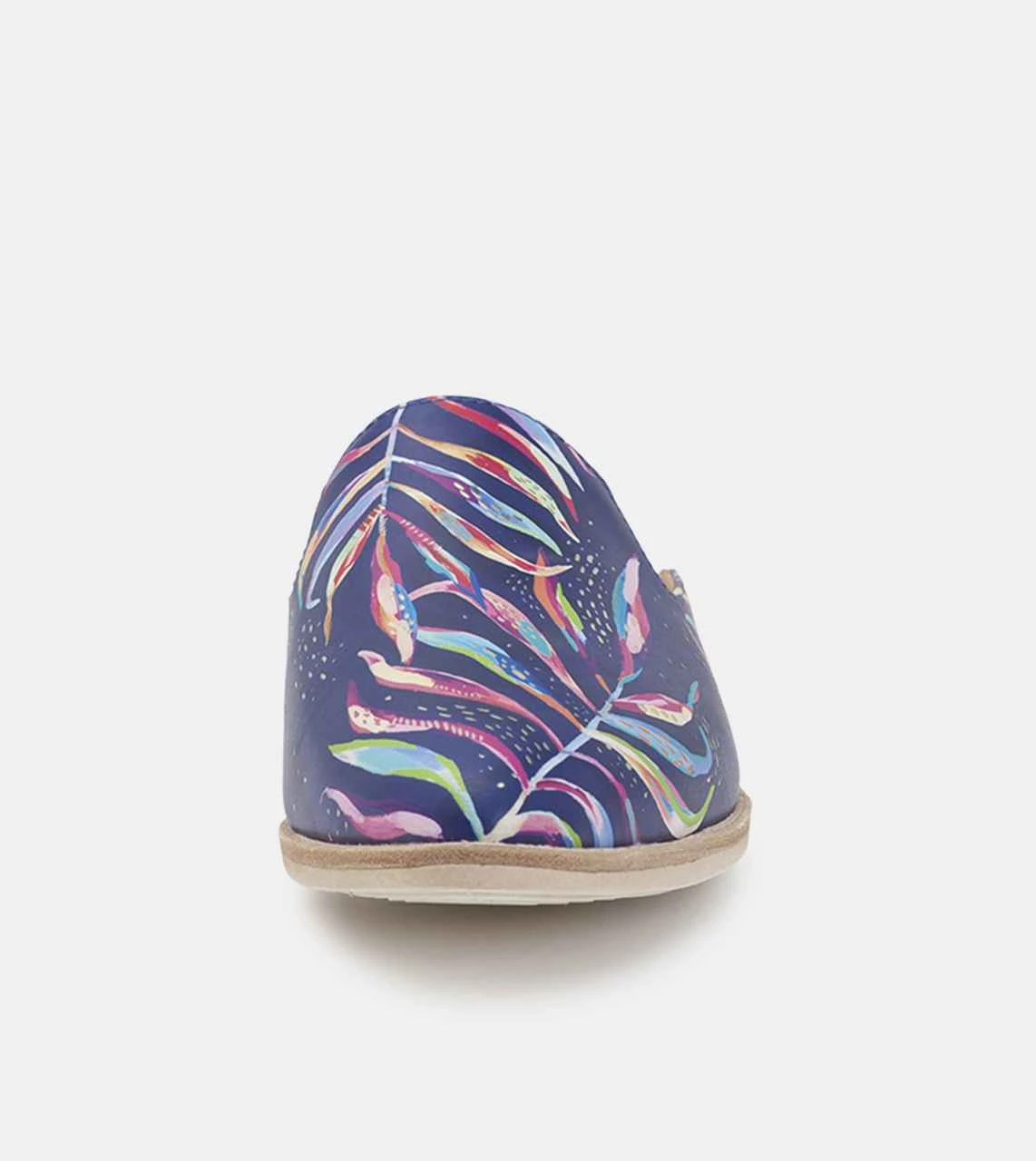 The Madison Mule Moonlight steps into those magical summer nights, with dark shades of purple, blue and metallic flecks mimicking the moonlight reflecting on the water at night. With a super soft leather upper and cushioned socks, you’ll never want to take these off!